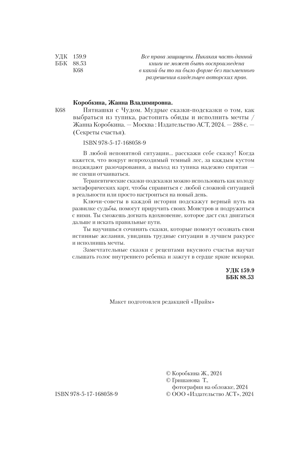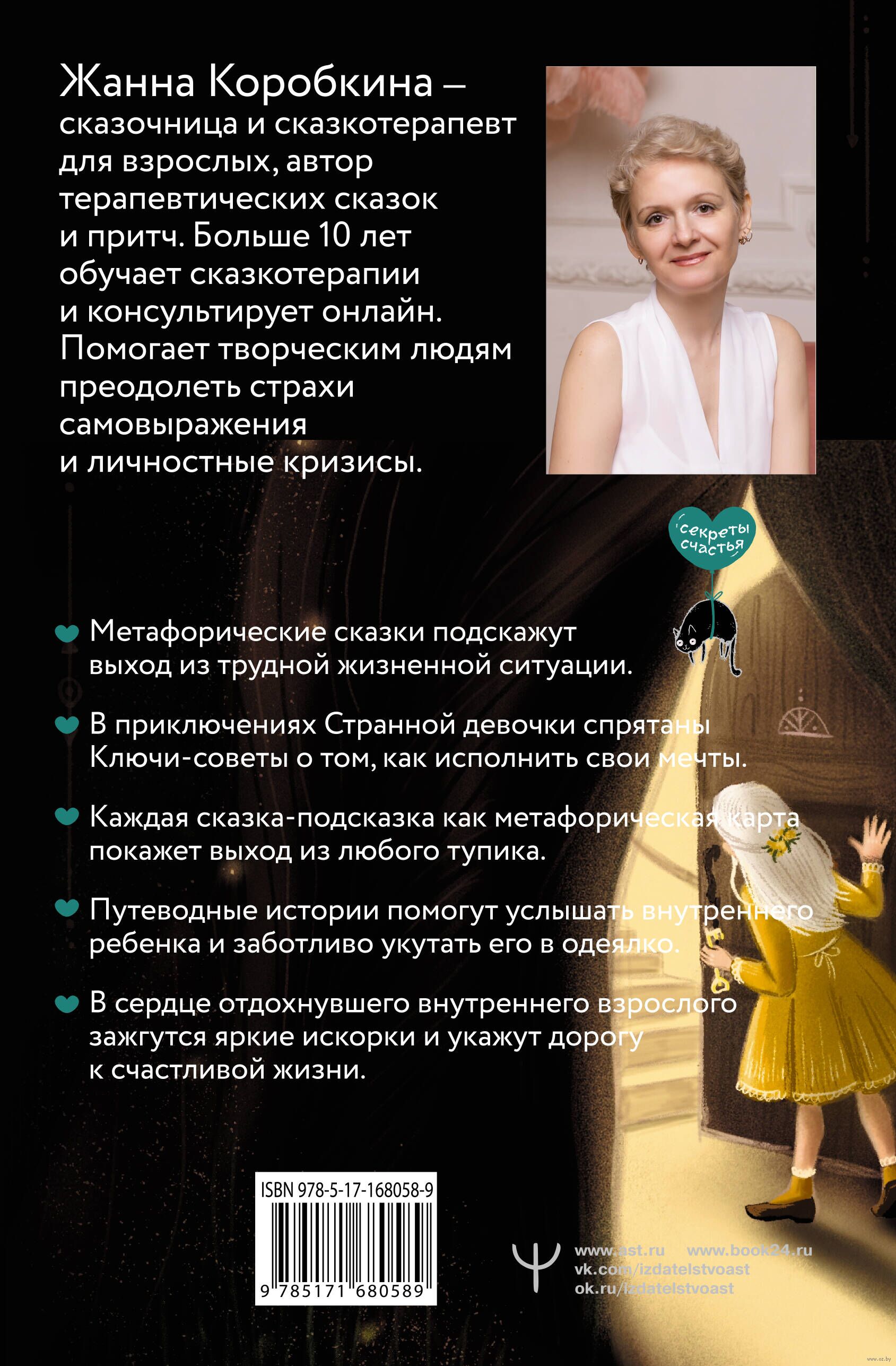 Жанна Коробкина – сказочница и сказкотерапевт для взрослых, автор терапевтических сказок и притч. Больше 10 лет обучает сказкотерапии и консультирует онлайн. Помогает творческим людям преодолеть страхи самовыражения и личностные кризисы.