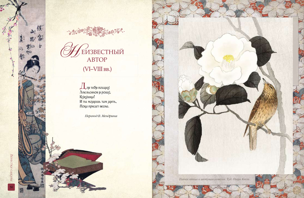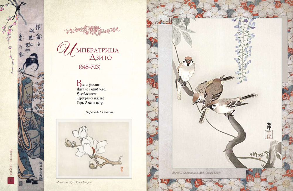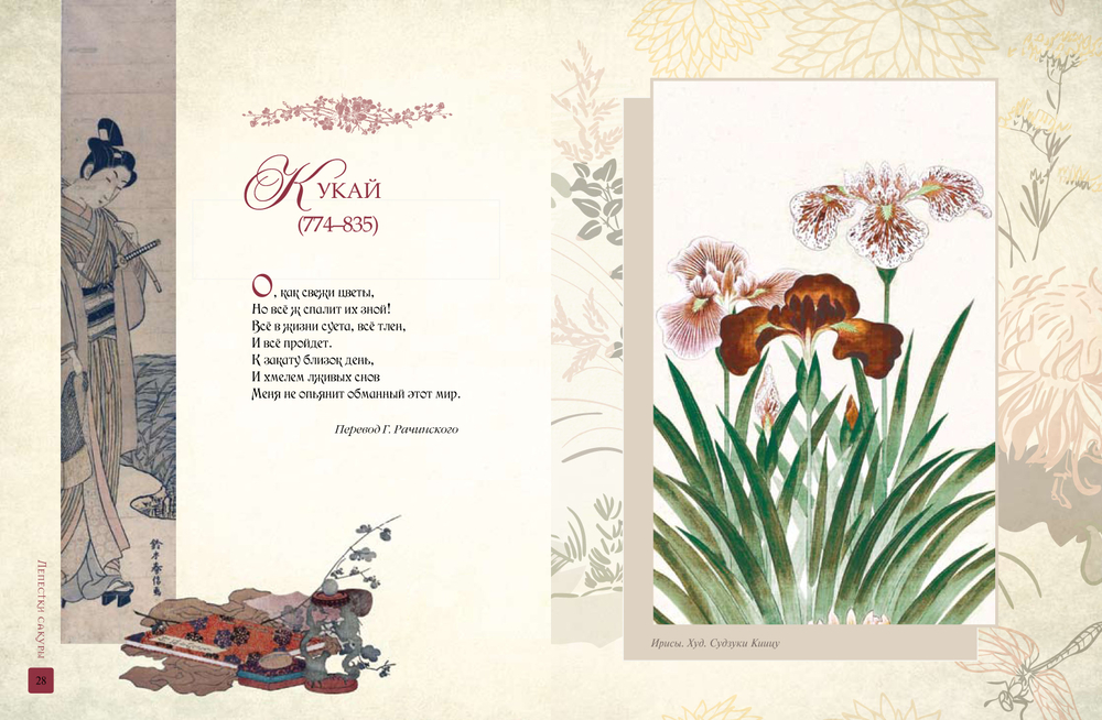 Совместными усилиями они создали уникальный "язык цветов", символика которого отлична от европейского. Наша антология объединяет японскую поэзию, живопись и красоту природы. Мы собрали лучшие стихотворения японских поэтов, связанные с темой цветов, — в переводах Александра Брандта, Константина Бальмонта, Николая Позднякова, Николая Азбелева, Николая Новича, Василия Мендрина, Аркадия Пресса, Павла Сухотина, Сергея Алымова и Венедикта Марта.