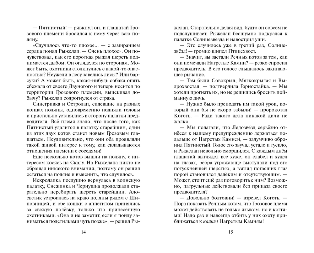Доблестный Грозовой кот Ярохвост осмелится встать на пути у амбициозного воина, который впоследствии станет Звездоцапом, чьё имя ещё долгое время будет внушать всем трепетный ужас. Глашатая племени Теней Рыжинка примет решение покинуть свой пост во имя общего блага и отправиться в далёкое и опасное путешествие в горы, потому что именно это подсказывает ей сердце. Храбрая предводительница Сумрачная Звезда отдаст всё ради племени Теней и первая за всю историю котов-воителей потеряет свою девятую жизнь.