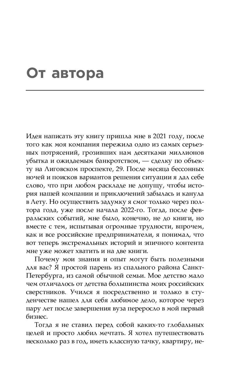 Можно ли сегодня удерживать лидерство в своей сфере и одновременно оставаться порядочным человеком? Не идти по головам, не нарушать законов и не топить конкурентов? "Да", – отвечает автор этой книги и рассказывает читателю правдивую историю собственного, непростого пути к созданию самой большой сети апарт-отелей в СПб.