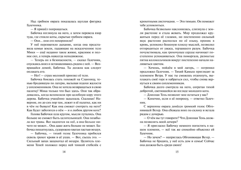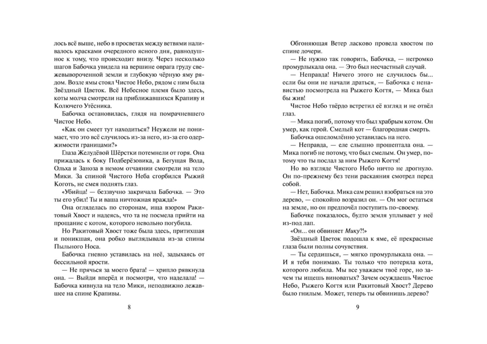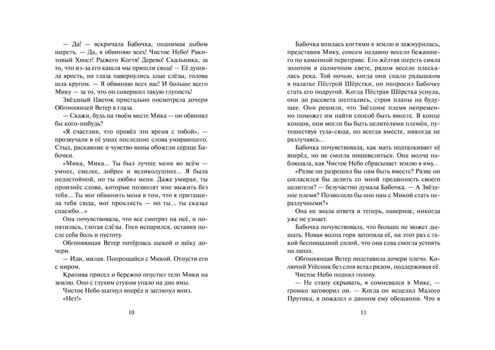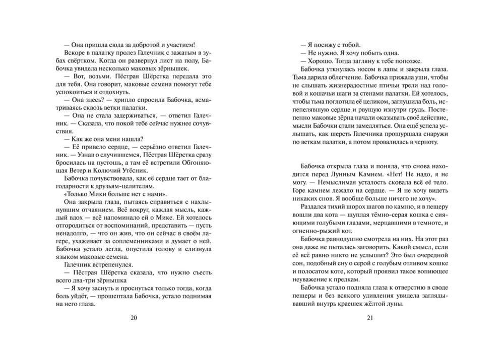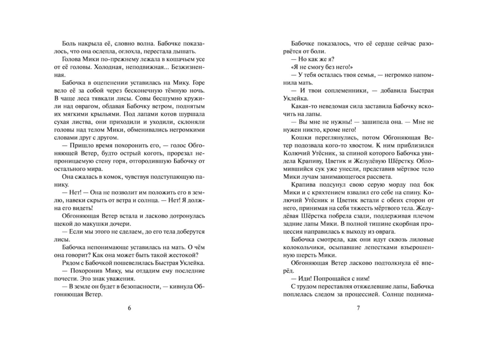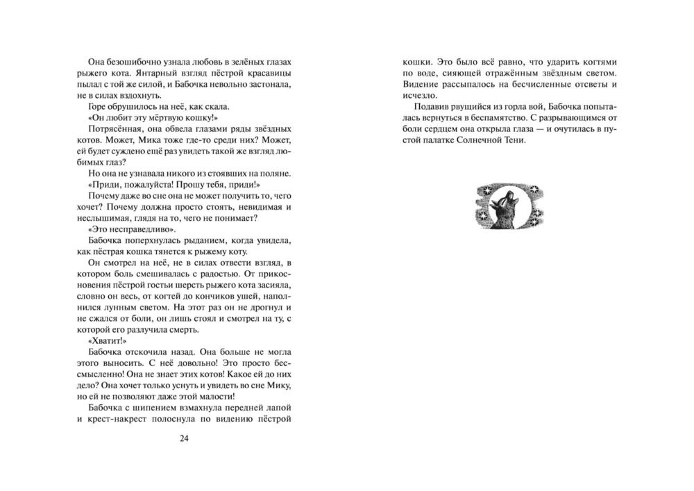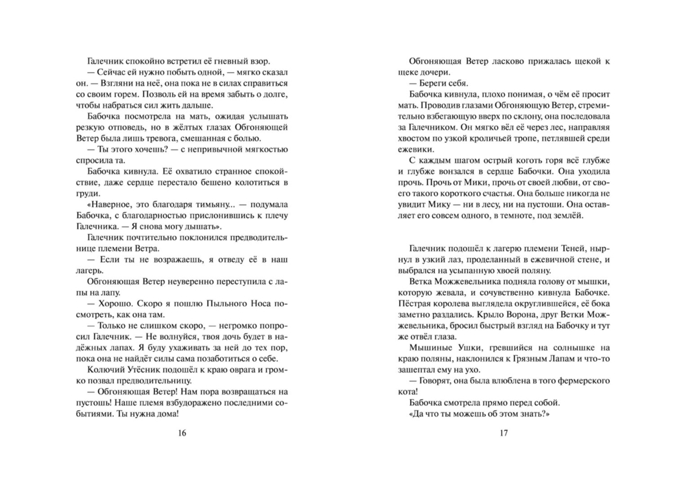 Однако путь целительства – это путь служения и одиночества, а трагическая гибель Мики – лишь первое испытание, уготованное ей судьбой. Стремясь быть верной своему долгу, Бабочка даже не догадывается, какую чудовищную жертву ей предстоит принести во имя служения племени. Только звёзды могут дать ей силы выдержать все испытания и рассыпать лепестки Сверкающей Звезды, собрать которые предстоит грядущим поколениям котов-воителей.