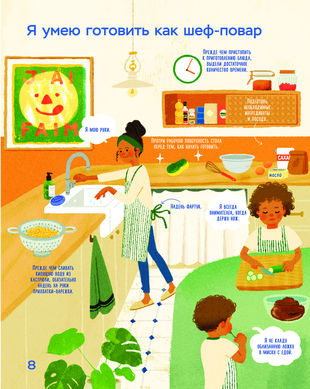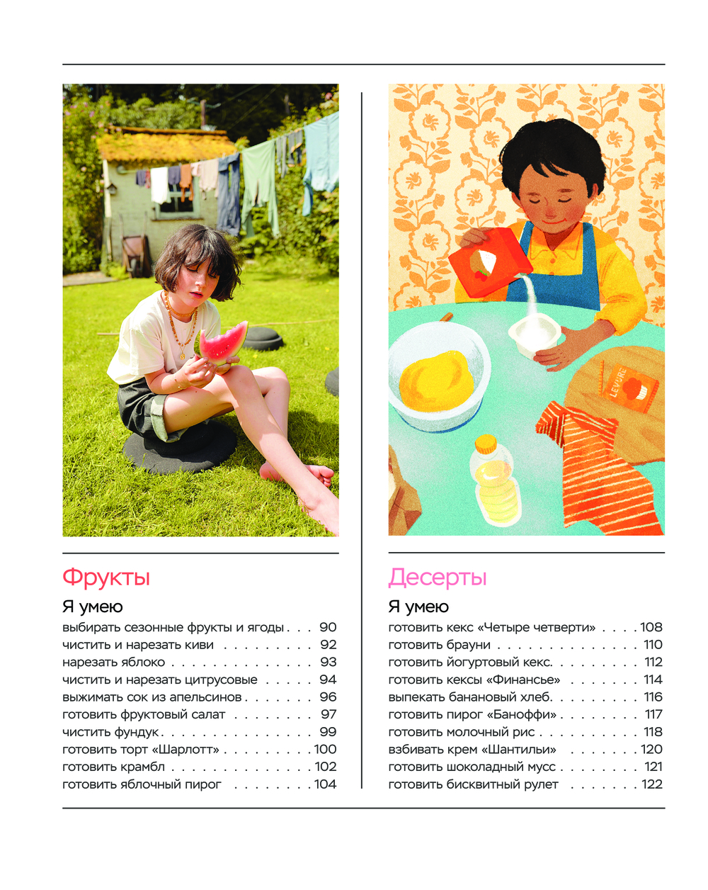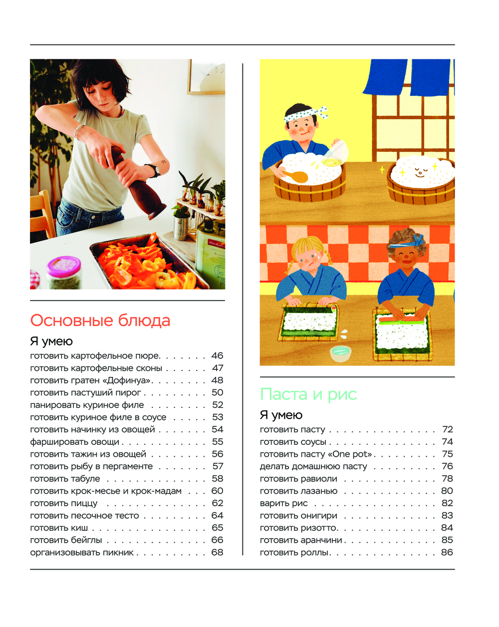 Многие взрослые до сих пор не умеют разбивать яйца. То получится, то половина выльется на стол. С этой книгой вы забудете об этой проблеме раз и навсегда. Как это делать правильно, расписано и показано на рисунках шаг за шагом. И дальше шаг за шагом с минутами и результатом приготовления проиллюстрировано, как варить яйца всмятку, в мешочек, вкрутую, как жарить омлет и скрэмбл, делать яйца "Мимоза" и такое загадочное блюдо, как флан. И подобным образом описаны этапы приготовления овощей, основных блюд, пасты и риса, фруктов и десертов, завтраков и съедобных сюрпризов. Основы, а следом – рецепты.