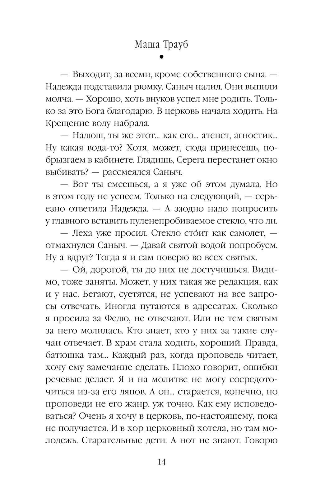 Могут ли случайные встречи повлиять на судьбу? Способен ли незнакомый человек заставить задуматься о правильности собственных решений? Определенно да, и новая книга Маши Трауб "Неслучайные люди", состоящая из короткого романа "По судьбе" и новелл о самых разных человеческих судьбах, тому доказательство. Герои этой книги – самые обычные люди со своими радостями и печалями. Но однажды в жизни каждого из них происходит событие, пусть и малого масштаба, которое многое, если не все, меняет в их представлениях о собственной судьбе. И получается, что случайных людей в судьбах персонажей нет – они все неслучайные. Проза Маши Трауб – это терапевтическое чтение: каждый может узнать в героях книги самого себя и свои обстоятельства и понять, что все поправимо.