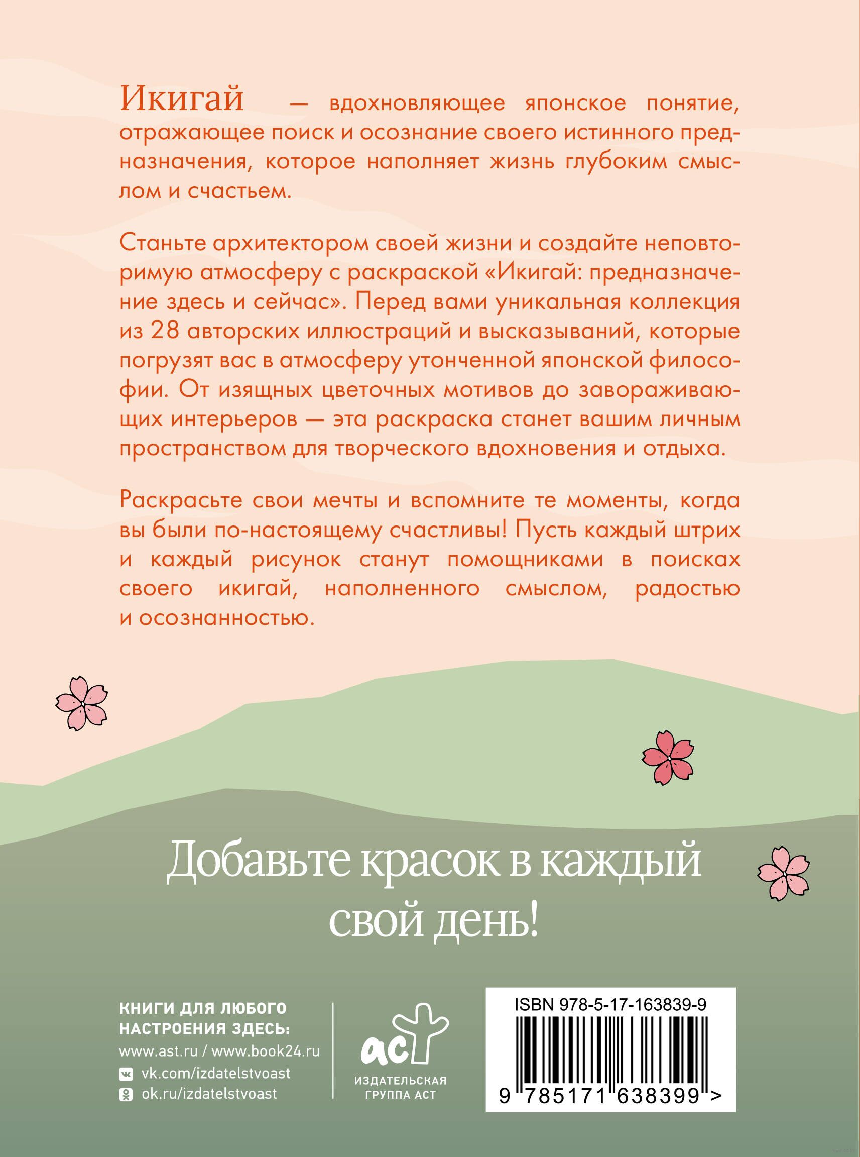 Станьте архитектором своей жизни и создайте неповторимую атмосферу с раскраской "Икигай: предназначение здесь и сейчас". Перед вами уникальная коллекция из 28 авторских иллюстраций и высказываний, которые погрузят вас в атмосферу утонченной японской философии. От изящных цветочных мотивов до завораживающих интерьеров – эта раскраска станет вашим личным пространством для творческого вдохновения и отдыха.