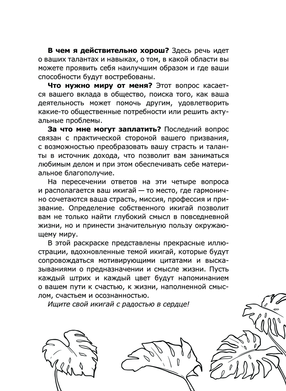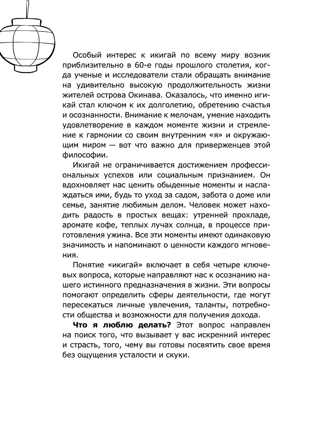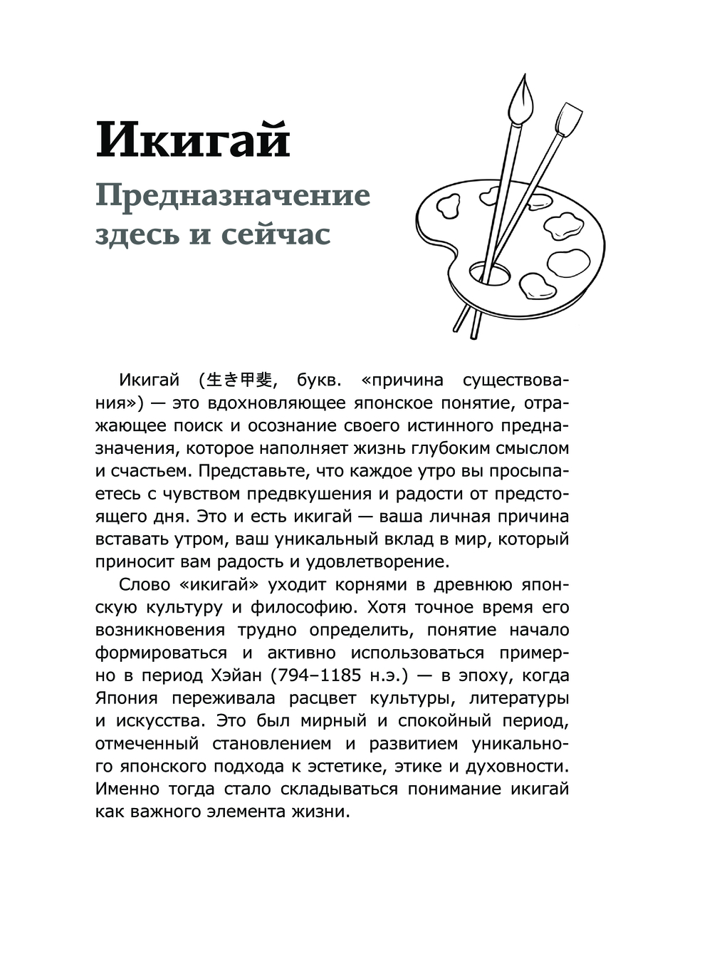 Раскрасьте свои мечты и вспомните те моменты, когда вы были по-настоящему счастливы! Пусть каждый штрих и каждый рисунок станут помощниками в поисках своего икигай, наполненного смыслом, радостью и осознанностью.