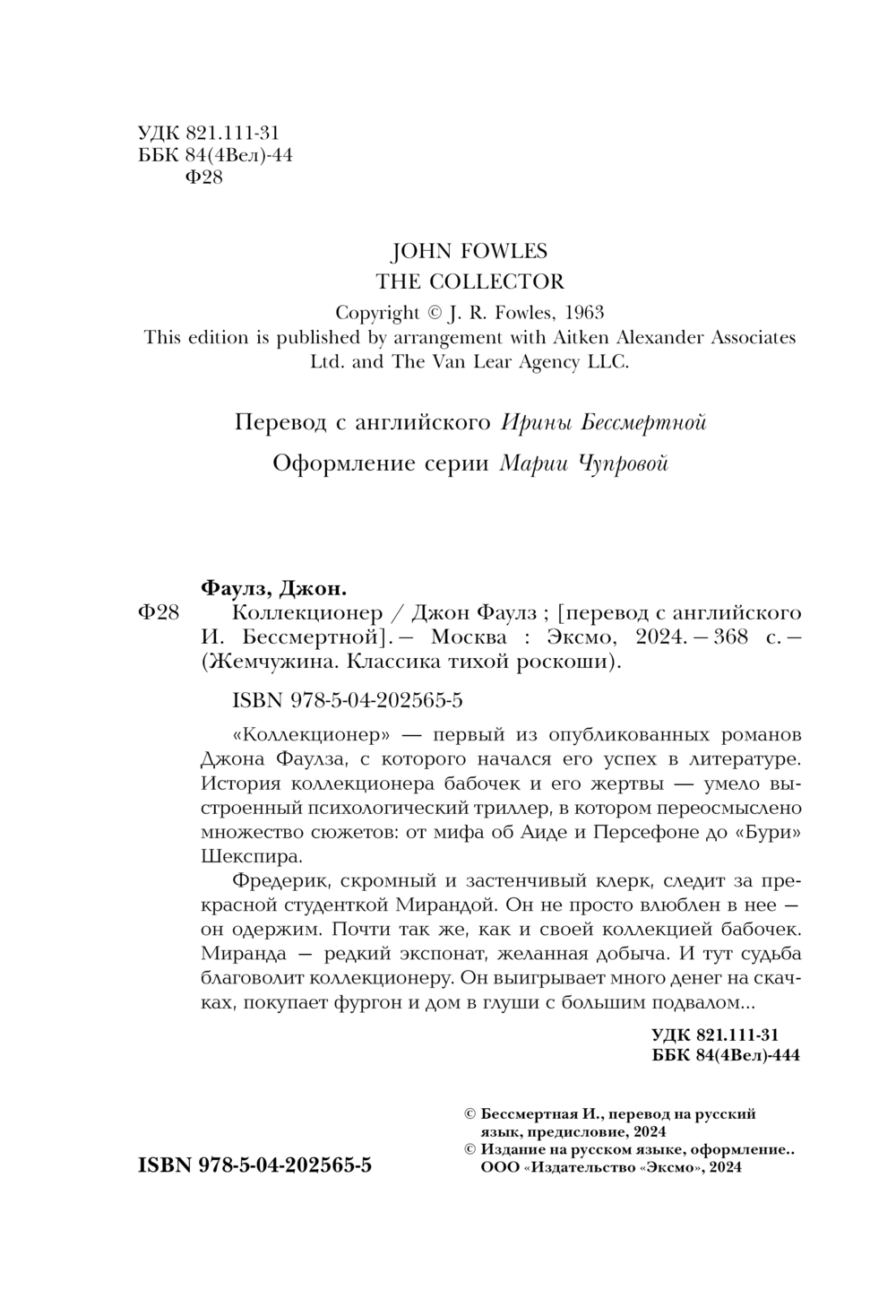 Джон Фаулз – писатель, ставший еще при жизни классиком. Его произведения "Волхв" и "Женщина французского лейтенанта" принесли автору мировую известность. "Коллекционер" – психологический триллер, повлиявший на сюжет романа Стивена Кинга "Мизери".