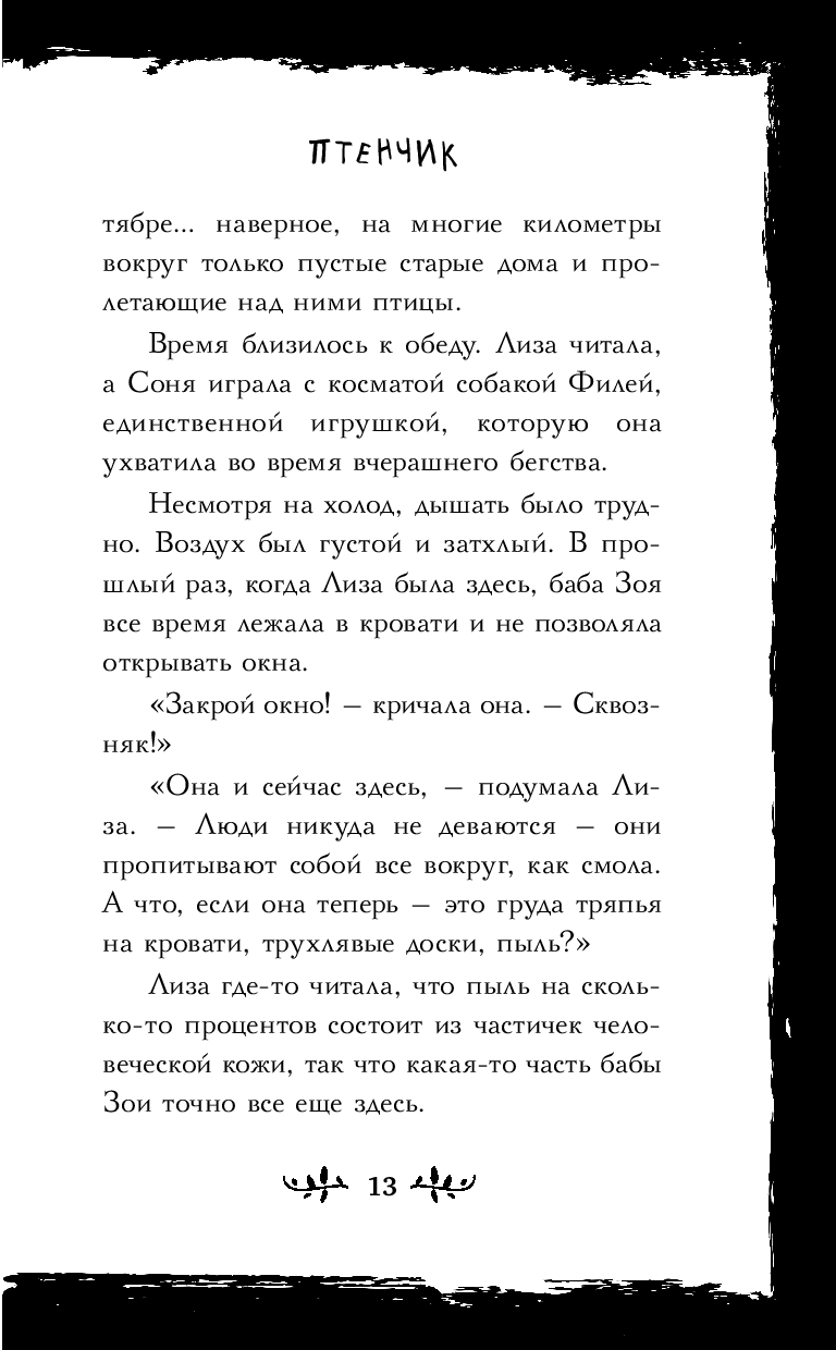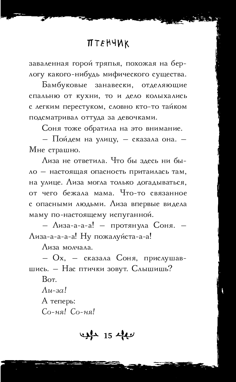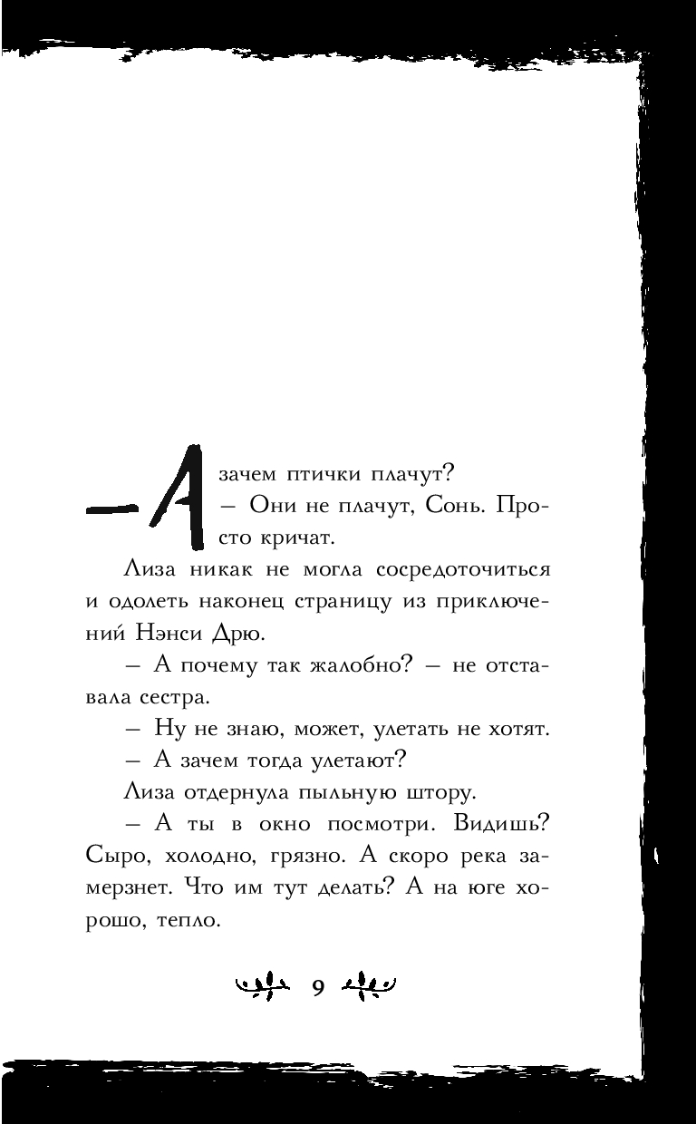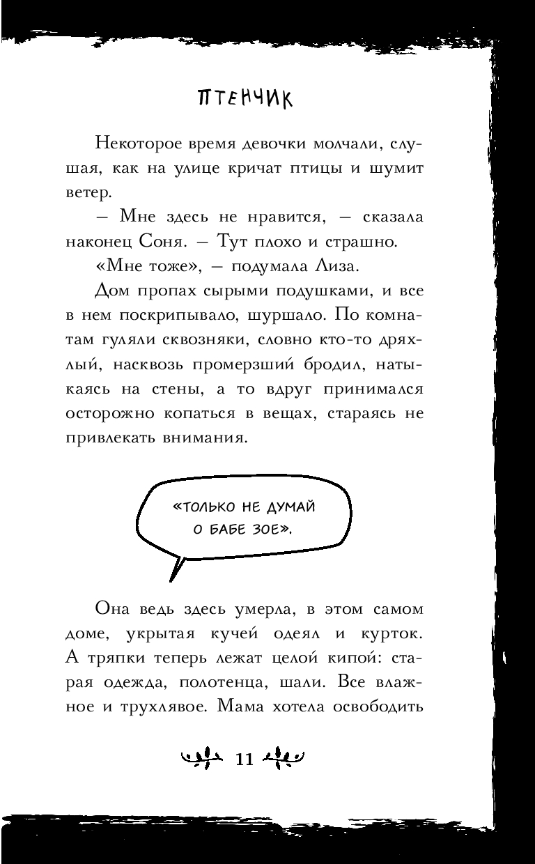 Соня присела на лавку и пристроила птенца себе на колени. Птенчик поднял голову к небу и тоскливо закричал. И тут случилось странное. Птицы разом смолкли. По коже побежали мурашки. Нет это, наверное, просто ветер. Птенец перестал кричать, и наваждение разом прошло... Казалось, беспокоиться не о чем, но в Лизе росло предчувствие чего-то нехорошего... Что-то приближалось.