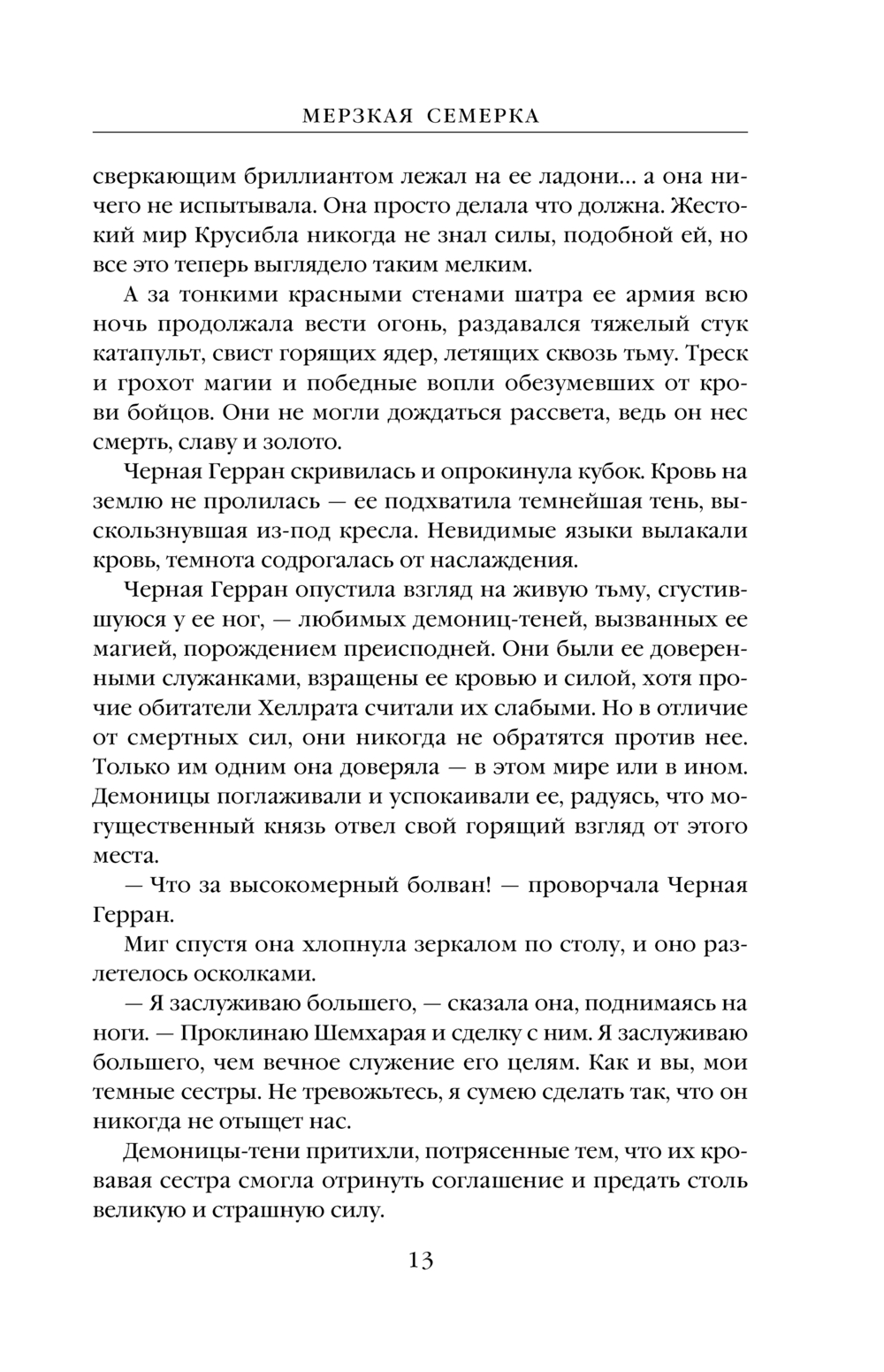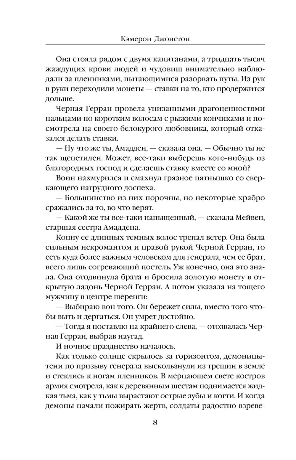 Черная Герран была ужасающим повелителем демонов и самым безжалостным генералом во всем Эссоране. Ее армию возглавляли шесть самых грозных воинов своего времени: некромант, лорд-вампир, полубог, командир орков, королева пиратов и извращенный алхимик. Вместе они поставили весь континент на колени, но не победили...