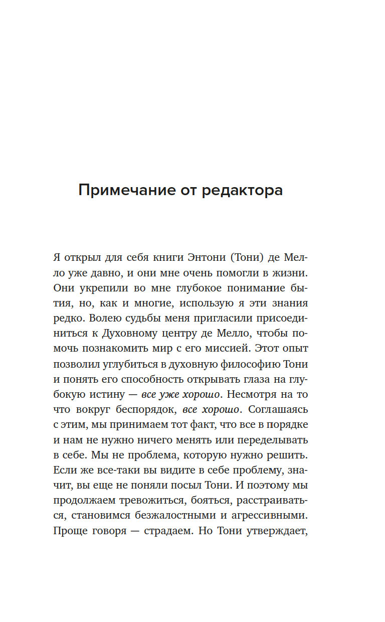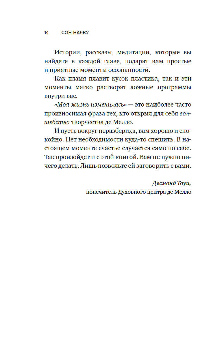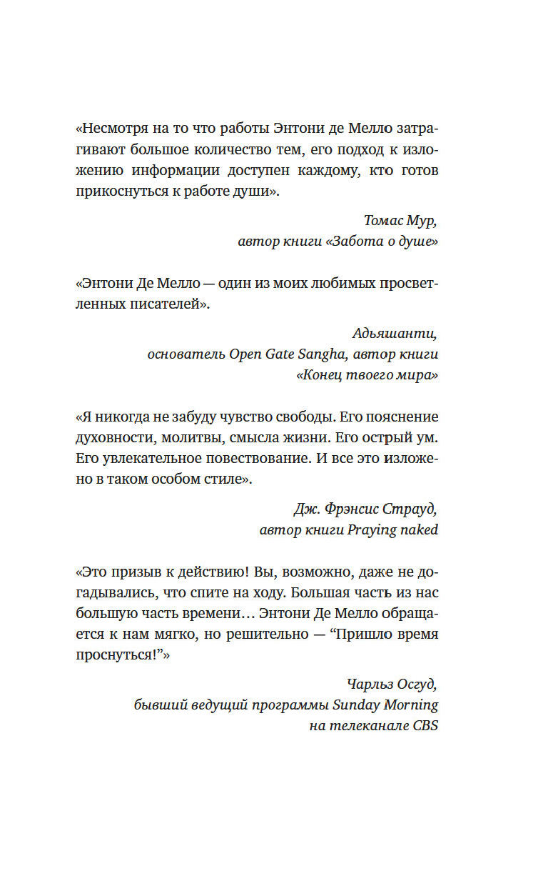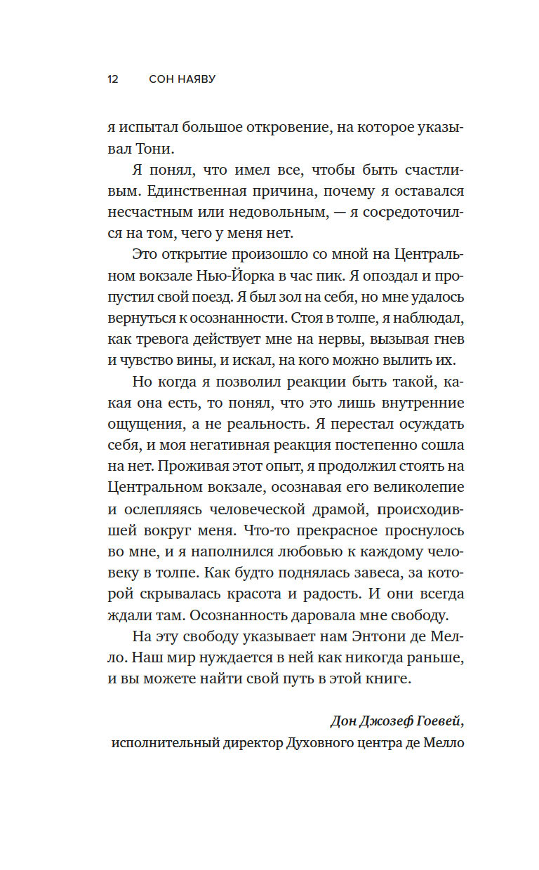Священник, чьи работы были ограничены для издания католической церковью. Мистик и психотерапевт, умело вплетающий в свои размышления притчи, медитации и наставления. Многогранность и восточная мудрость Энтони де Мелло сделали его книги мировыми бестселлерами – близкими, доступными и широко распространенными. "Сон наяву" – одна из последних рукописей де Мелло, изданная уже после его смерти. Книга наполнена любовью, принятием себя и осознанностью, а неторопливая манера повествования словно погружает в медитацию при чтении.