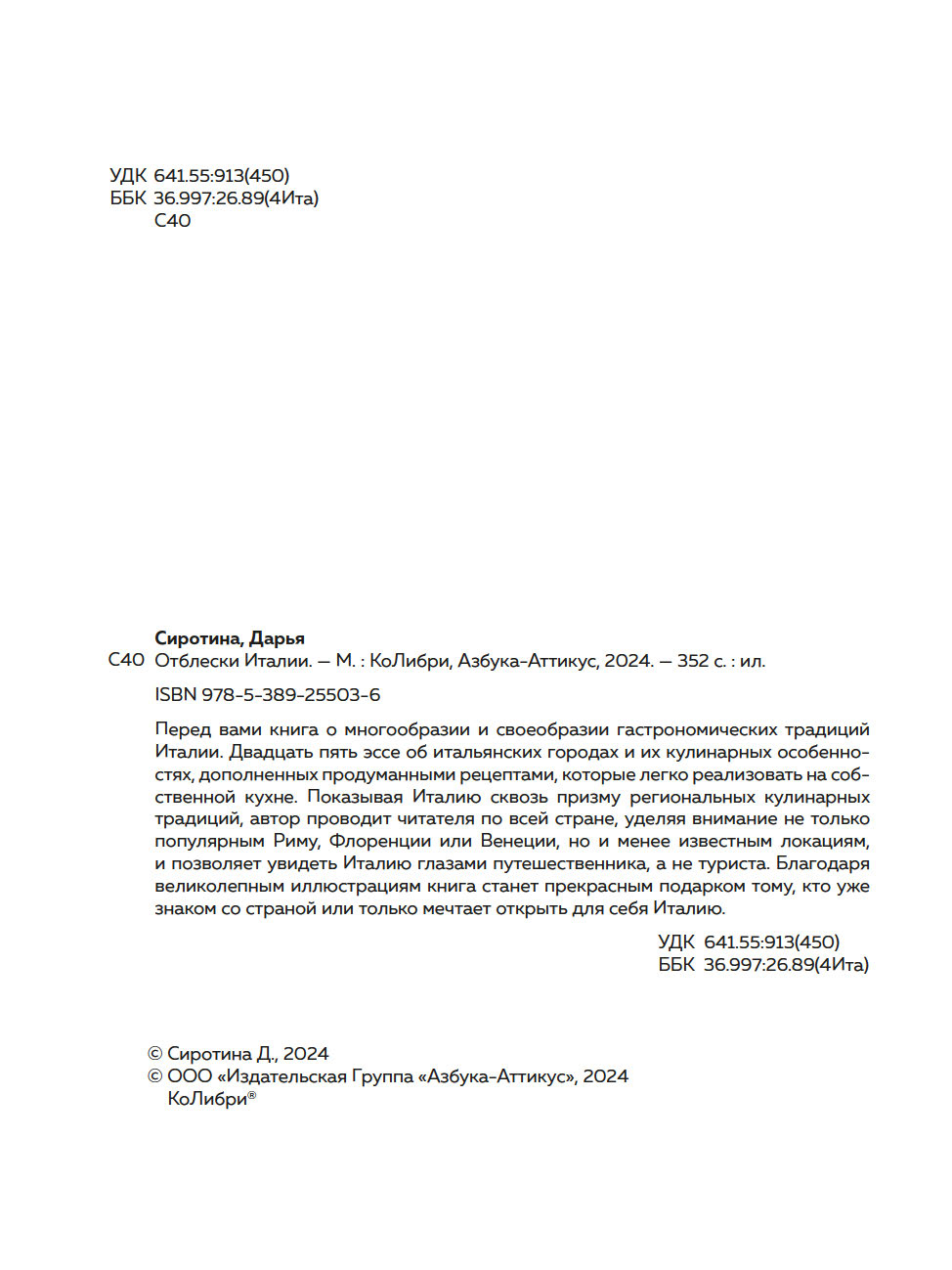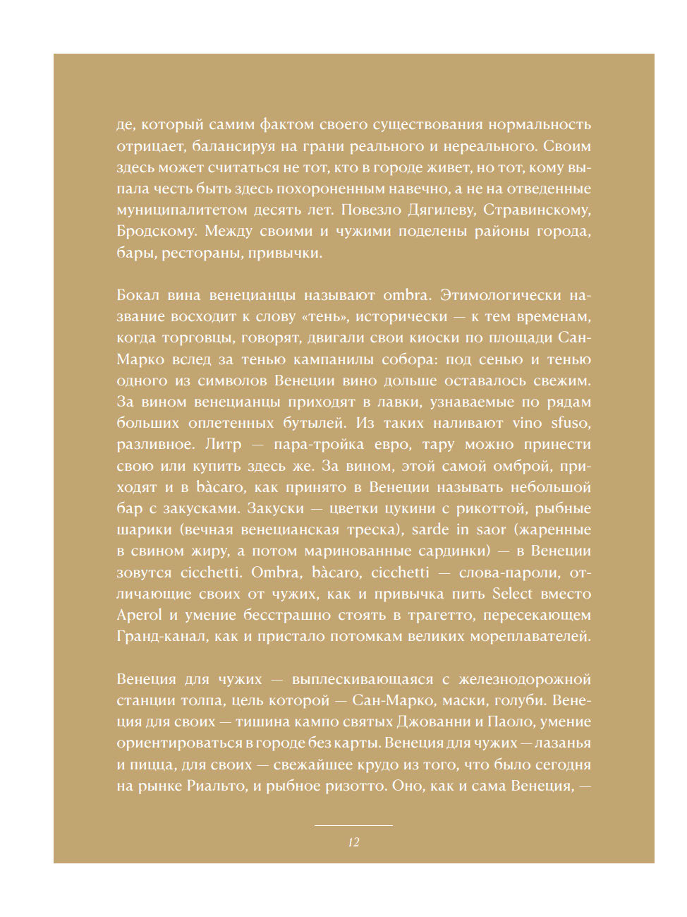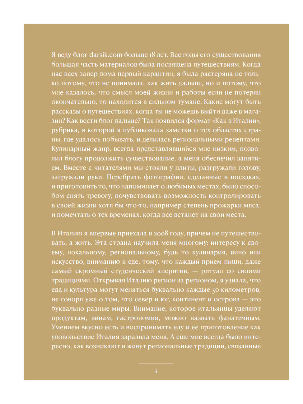 Перед вами книга о многообразии и своеобразии гастрономических традиций Италии. Двадцать пять эссе об итальянских городах и их кулинарных особенностях, дополненных продуманными рецептами, которые легко реализовать на собственной кухне. Показывая Италию сквозь призму региональных кулинарных традиций, автор проводит читателя по всей стране, уделяя внимание не только популярным Риму, Флоренции или Венеции, но и менее известным локациям, и позволяет увидеть Италию глазами путешественника, а не туриста. Благодаря великолепным иллюстрациям книга станет прекрасным подарком тому, кто уже знаком со страной или только мечтает открыть для себя Италию.