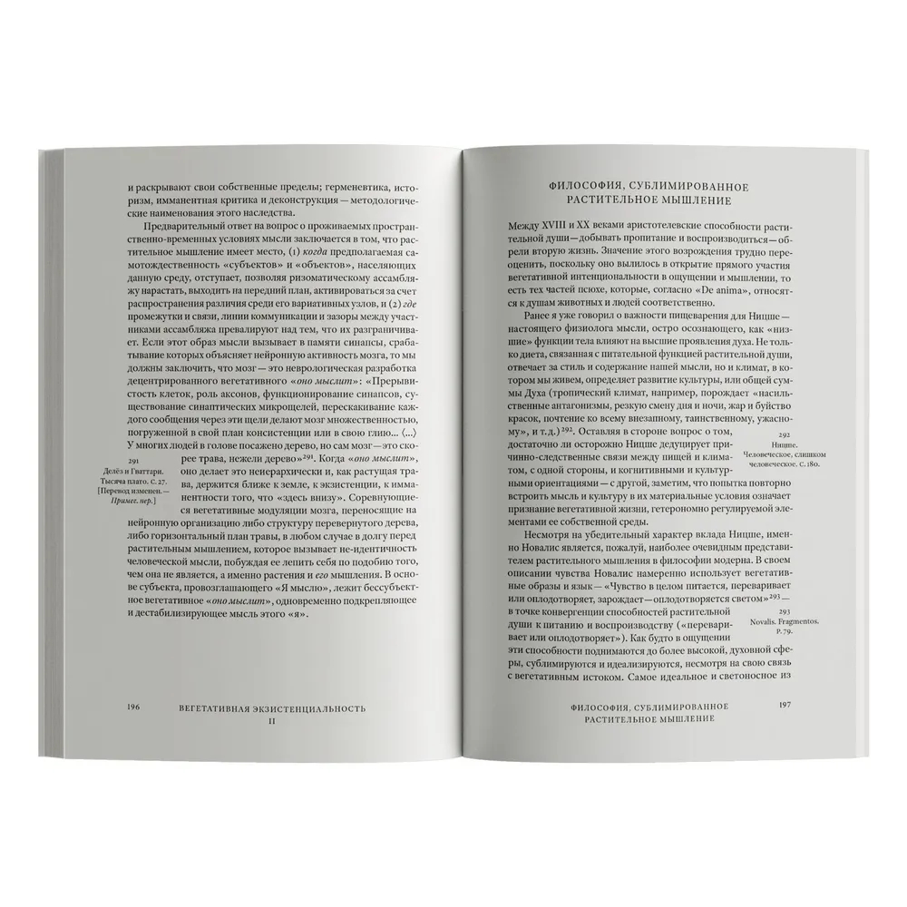 На окраинах окраин философии обитают нечеловеческие (и неживотные) существа, среди которых – растения. И если современные философы обычно воздерживаются от постановки онтологических и этических вопросов, связанных с вегетативной жизнью, то Майкл Мардер выдвигает эту жизнь на первый план, деконструируя на страницах своей книги метафизику. Автор выявляет экзистенциальные особенности в поведении растений и вегетативное наследие в человеческой мысли – следы человека в растении и следы растения в человеке, – чтобы отстоять способность растительности к сопротивлению логике тотализации и к выходу за узкие рамки инструментального мышления. Реконструируя жизнь растений "после метафизики", Мардер акцентирует внимание на их уникальной темпоральности, свободе и материально-практическом знании, или мудрости. В его понимании, "растительное мышление" – это некогнитивный, неидеационный и необразный модус мышления, свойственный растениям, а также процесс возвращения человеческой мысли к её корням и уподобления этой мысли растительной.