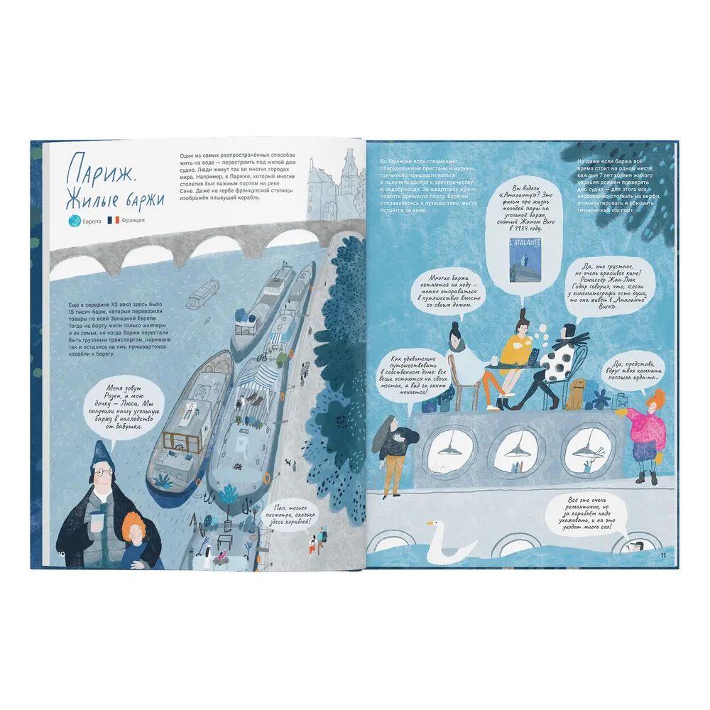 Соломенные острова, плавучие дворцы, морские фермы, речные дебаркадеры, хаусботы, баржи, кварталы и целые города на воде – автор и иллюстратор этой книги Наталья Демьяненко знакомит читателей с самыми удивительными домами на воде и их жителями. Почему люди выбирают такой образ жизни? Как устроен их быт? Как в водной глади отражаются архитектура, технологии, традиции? Мы отправляемся в путешествие вокруг земного шара по рекам, океанам, каналам и озёрам, воды которых защищают, кормят и служат домом. А ещё они дают чувство особой свободы – и ответственности за нашу планету.