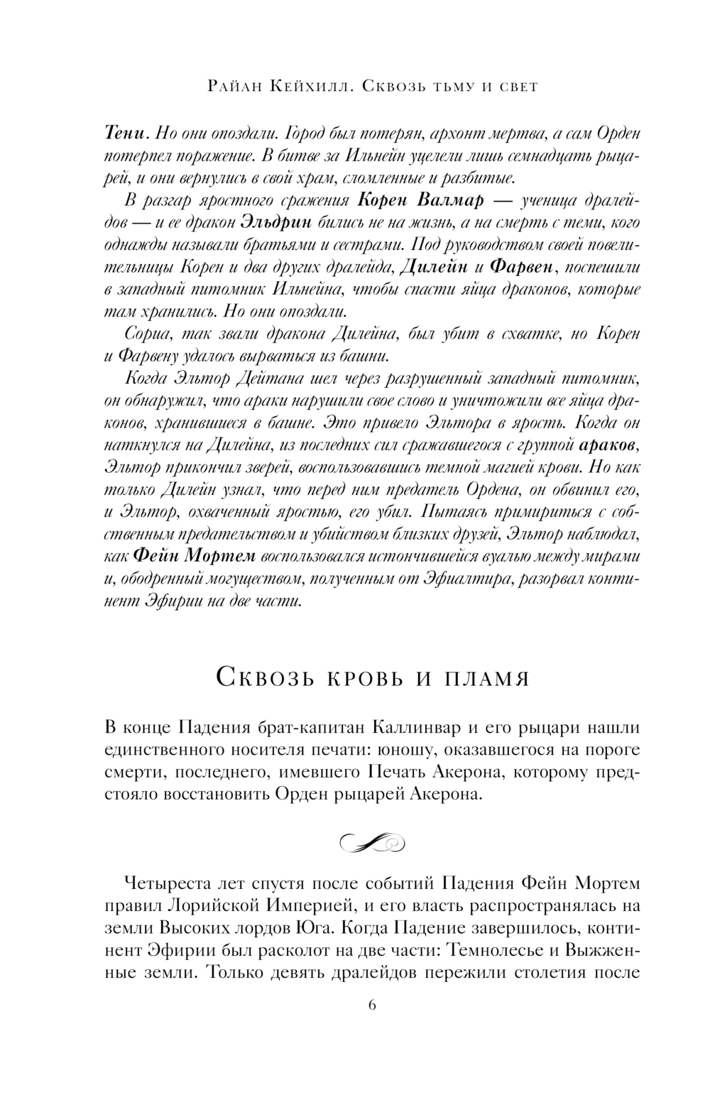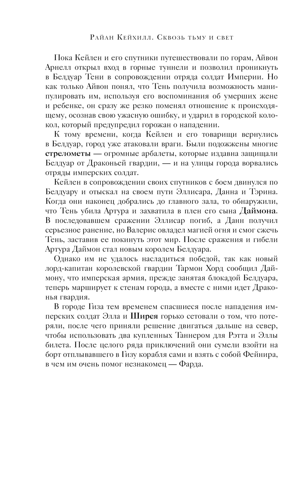Бастион надежды, город Белдуар, пал под натиском Драконьей гвардии, и Кейлен Брайер, отступая, разделяется с частью своих спутников. Впереди долгий путь, опасный и выбранный другими, прежде чем Кейлен снова встретится с теми, кто стал ему не менее близким, чем семья.