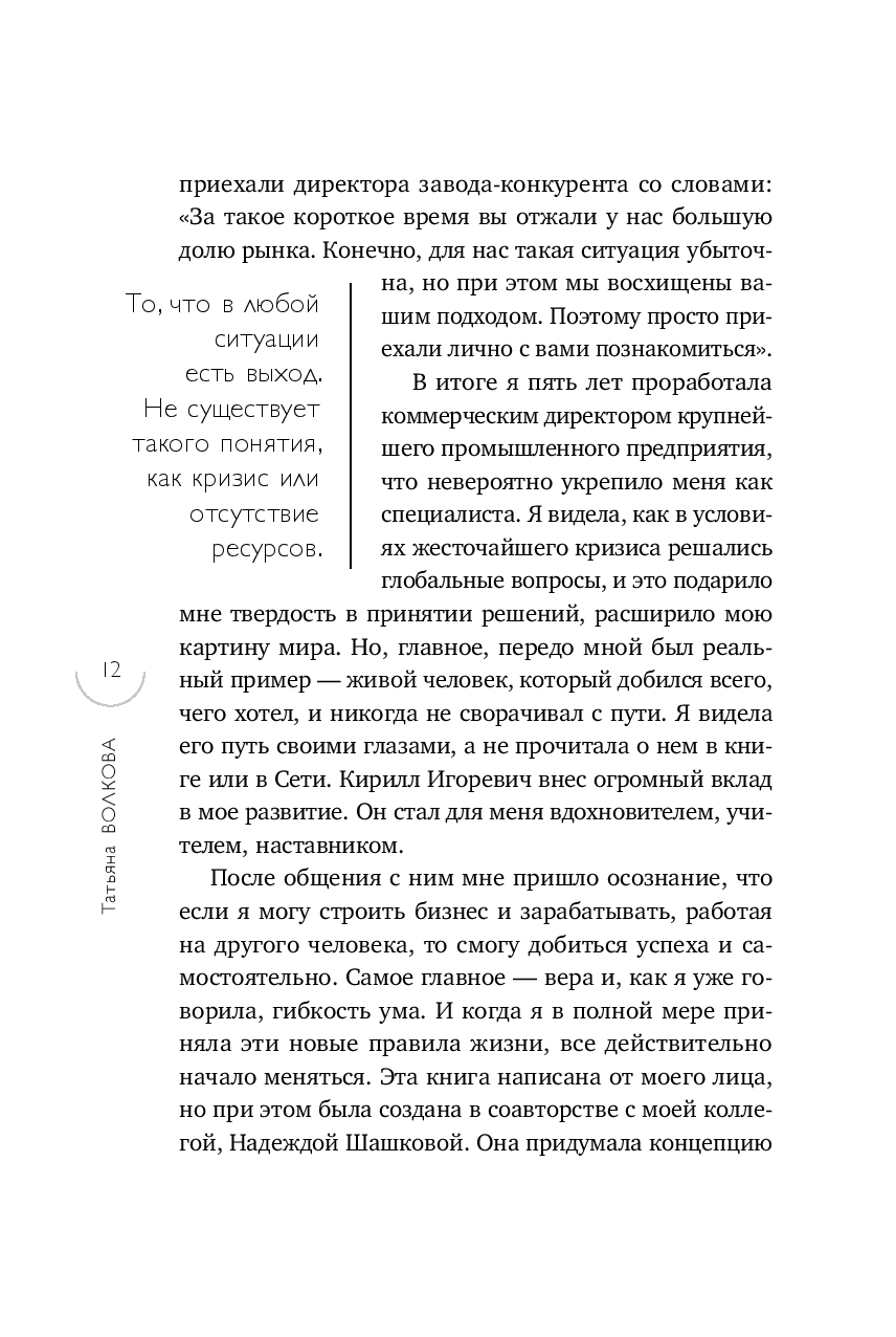 Деньги приходят к тем, кто достиг личностной целостности. Избавился от негативных сценариев, договорился со своими комплексами, сумел поставить правильную цель. Татьяна Волкова, финансовый консультант и инвестор, человек, твердо стоящий на ногах и прошедший путь от деревенской девчонки до успешного предпринимателя, объясняет, как настроить себя и образ жизни так, чтобы деньги давались легко и естественно.