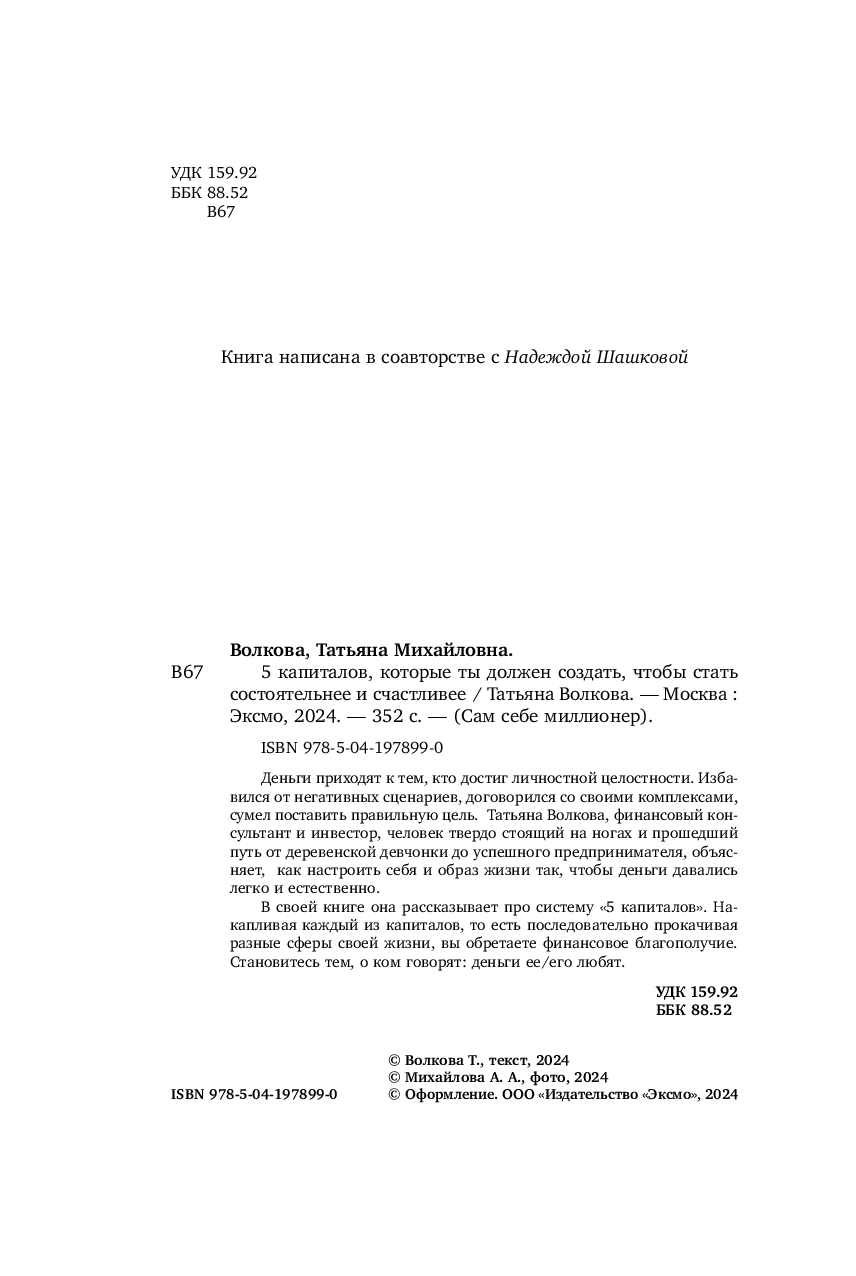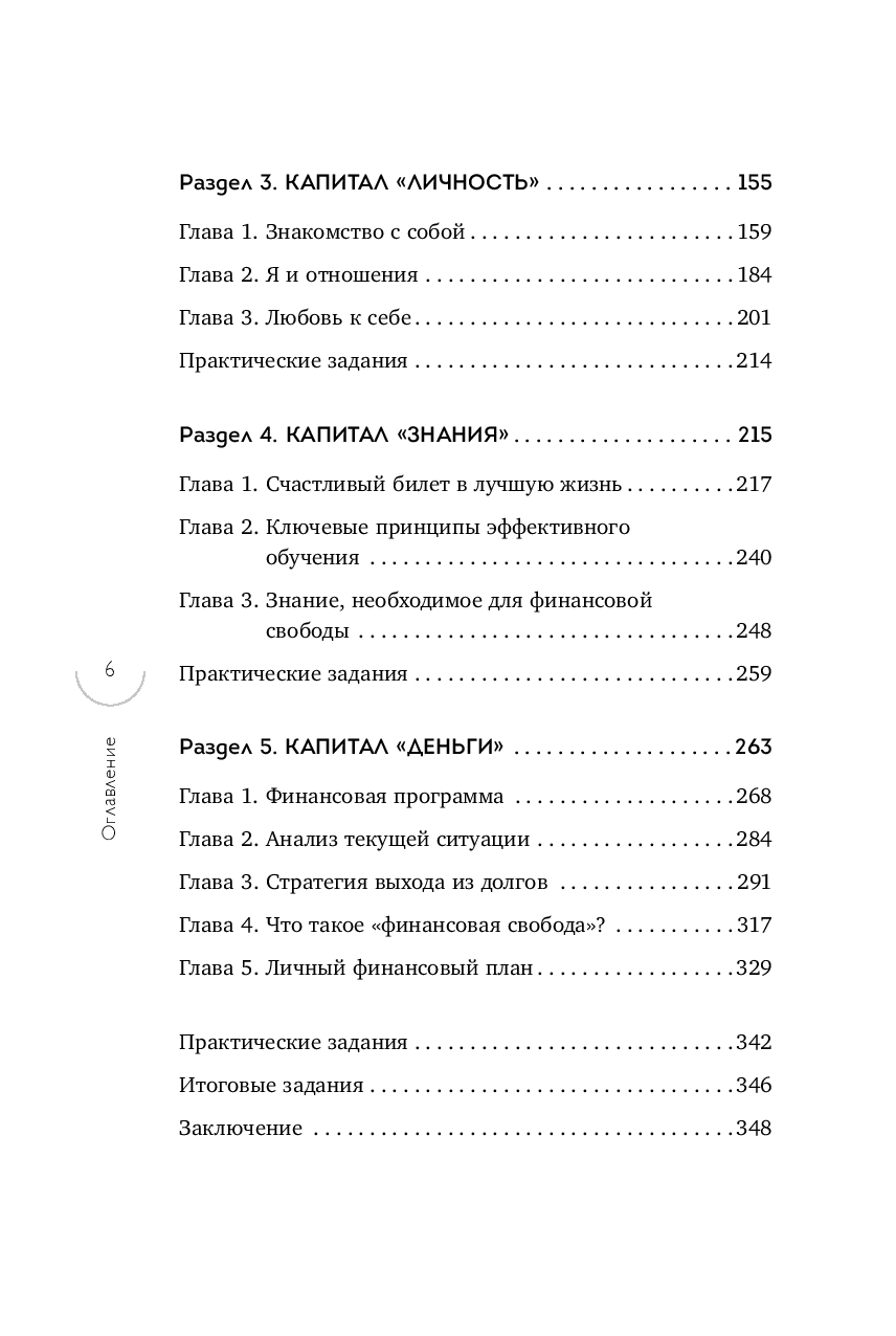 В своей книге она рассказывает про систему "5 капиталов". Накапливая каждый из капиталов, то есть последовательно прокачивая разные сферы своей жизни, вы обретаете финансовое благополучие. Становитесь тем, о ком говорят: деньги ее/его любят.