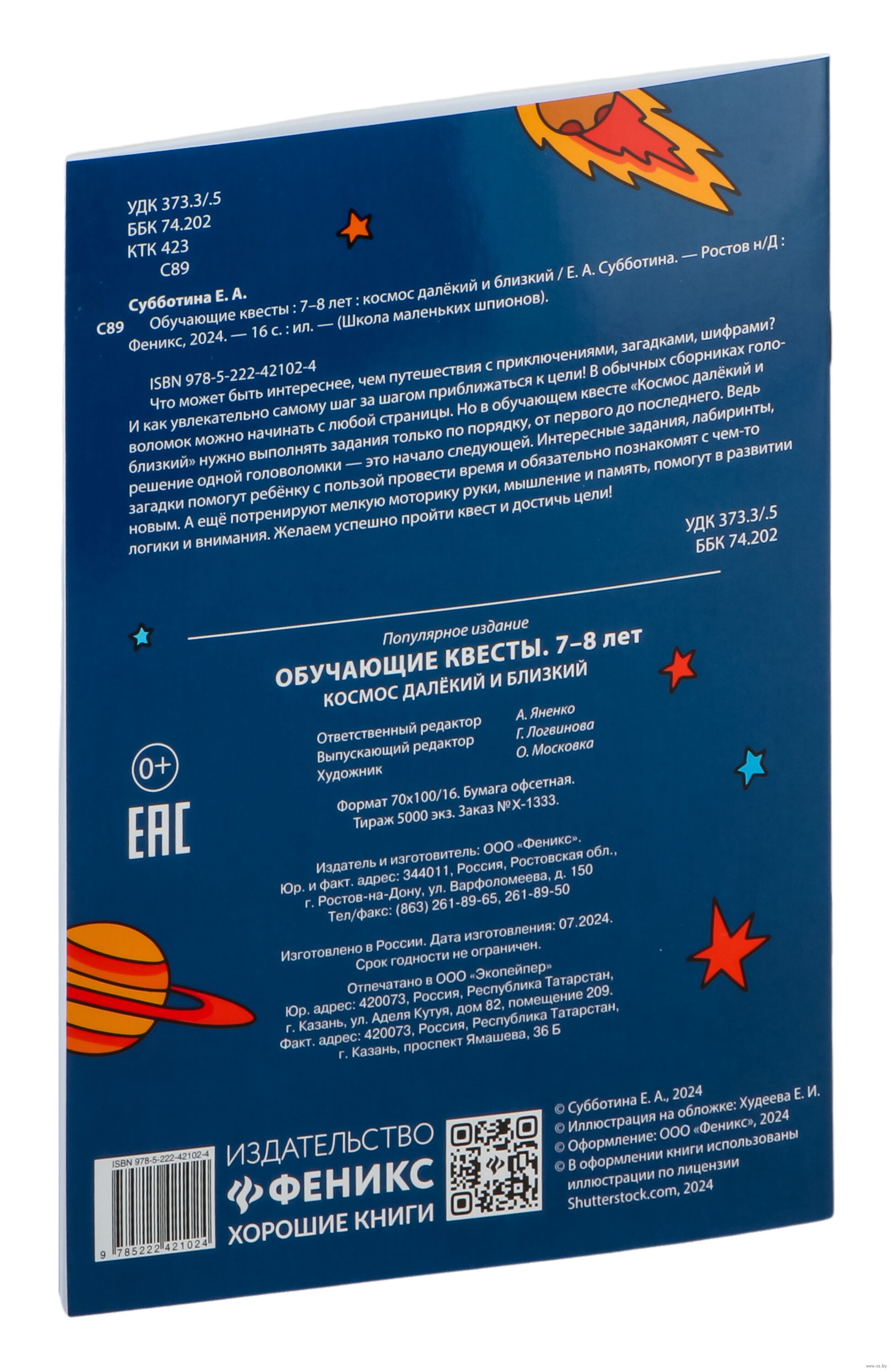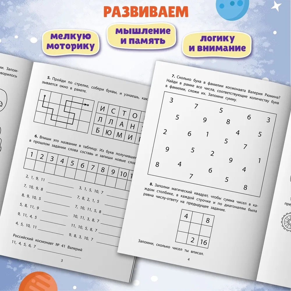 Что может быть интереснее, чем путешествия с приключениями, загадками, шифрами? И как увлекательно самому шаг за шагом приближаться к цели! В обычных сборниках головоломок можно начинать с любой страницы. Но в обучающем квесте "Космос далекий и близкий" нужно выполнять задания только по порядку, от первого до последнего. Ведь решение одной головоломки – это начало следующей. Интересные задания, лабиринты, загадки помогут ребёнку с пользой провести время и обязательно познакомят с чем-то новым. А ещё потренируют мелкую моторику руки, мышление и память, помогут в развитии логики и внимания. Желаем успешно пройти квест и достичь цели!