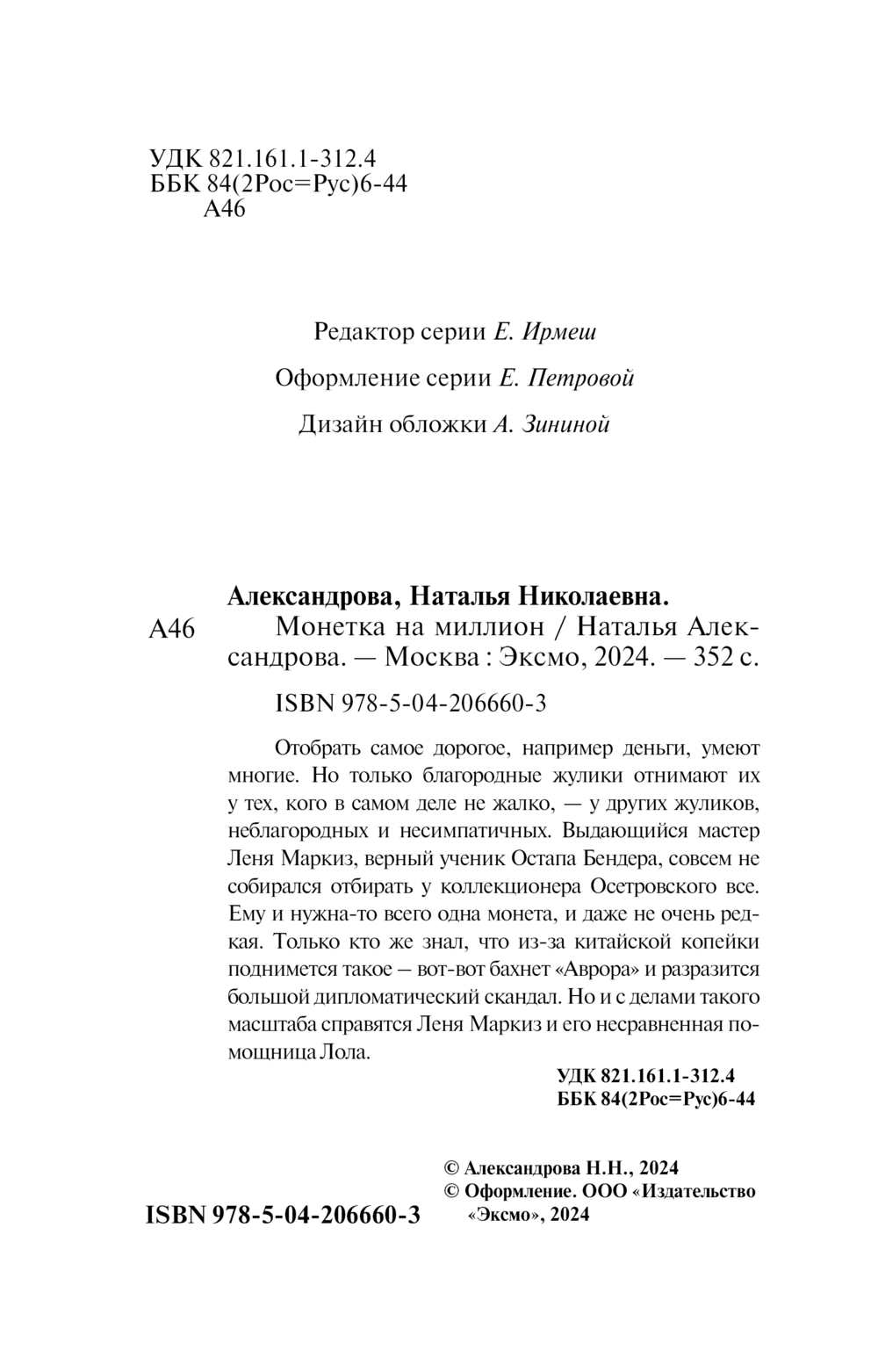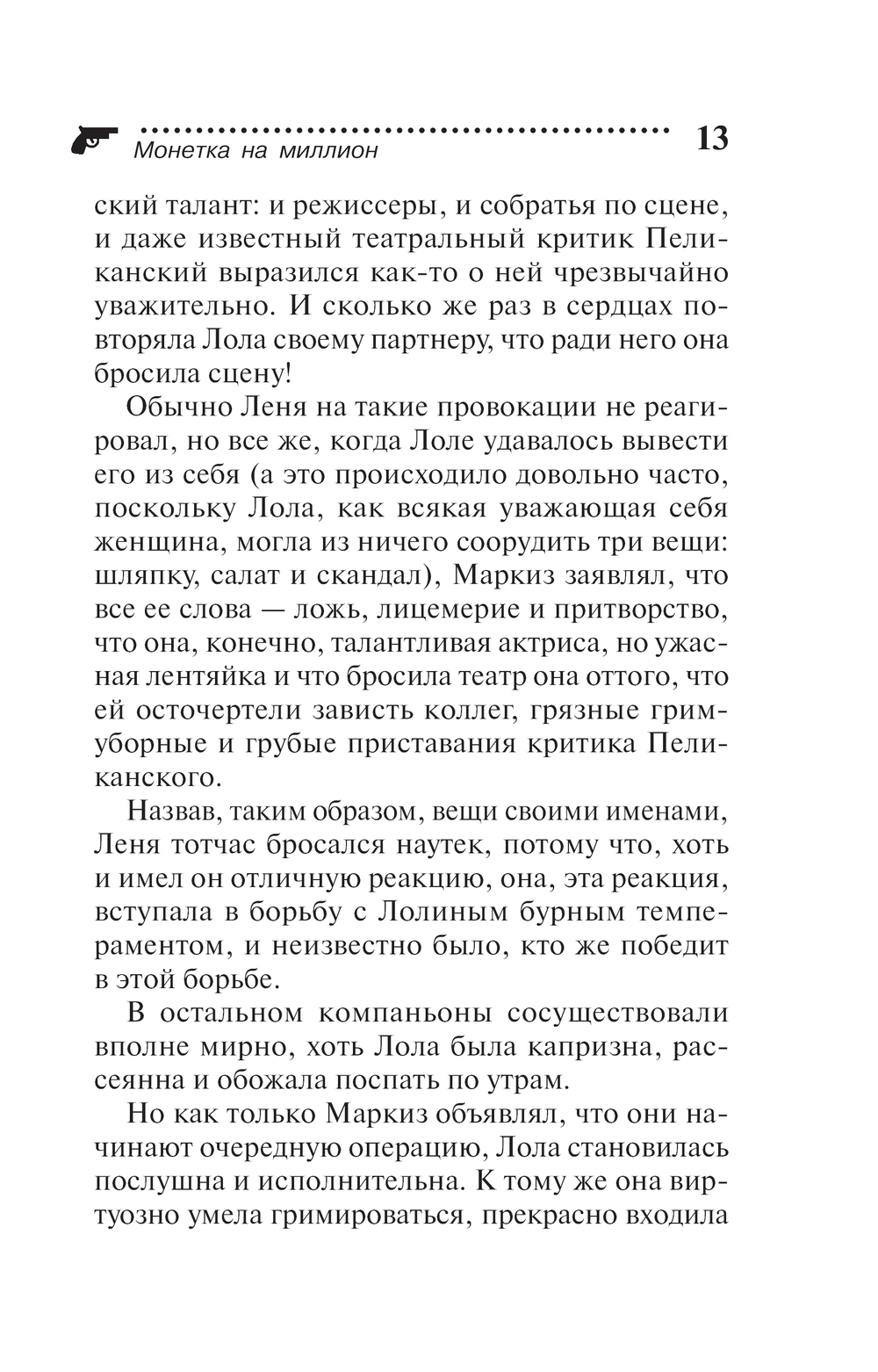 Отобрать самое дорогое, например, деньги, умеют многие. Но только благородные жулики отнимают их у тех, кого в самом деле не жалко, – у других жуликов, неблагородных и несимпатичных. Выдающийся мастер Леня Маркиз, верный ученик Остапа Бендера, совсем не собирался отбирать у коллекционера Осетровского все. Ему и нужна-то всего одна монета, и даже не очень редкая. Только кто же знал, что из-за китайской копейки поднимется такое – вот-вот бахнет "Аврора" и разразится большой дипломатический скандал. Но и с делами такого масштаба справятся Леня Маркиз и его несравненная помощница Лола.