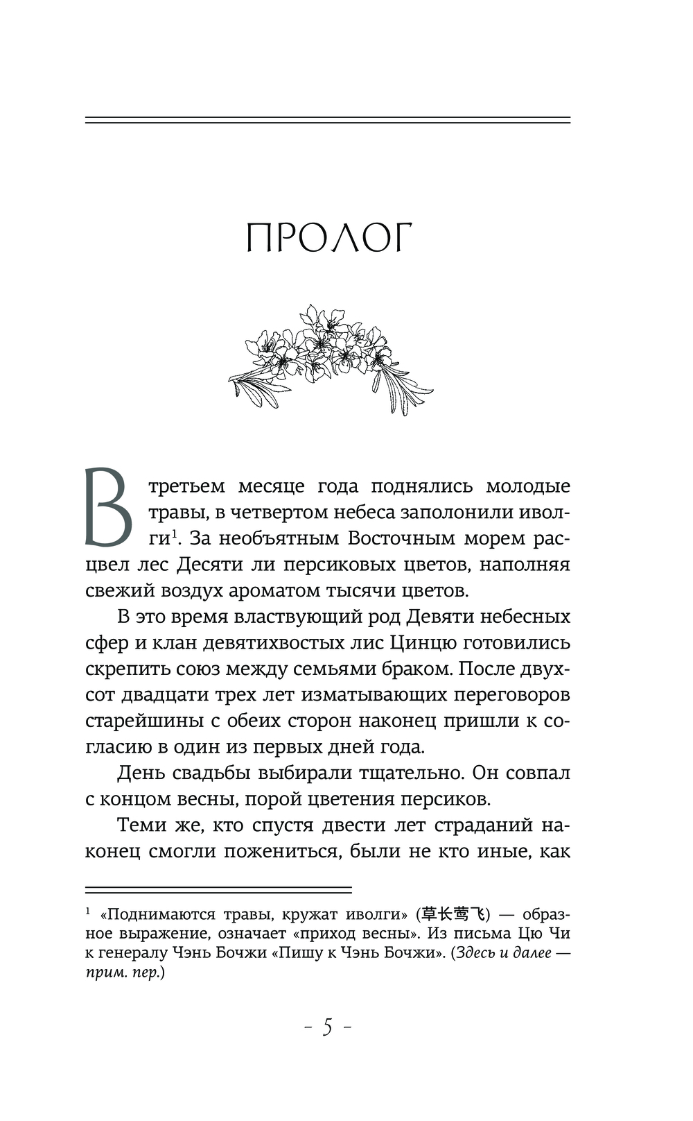 Небожитель Дун Хуа, чья слава гремит на весь мир, вечный затворник, чей лик появляется лишь на картинах, и Бай Фэнцзю, девятихвостая лиса из земель, где под солнечными лучами распускаются цветы. Идут года, пролетают сотни, тысячи лет, но лишь одно остается неизменным – любовь.