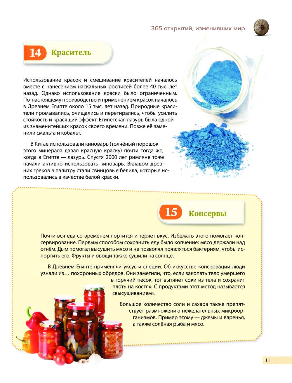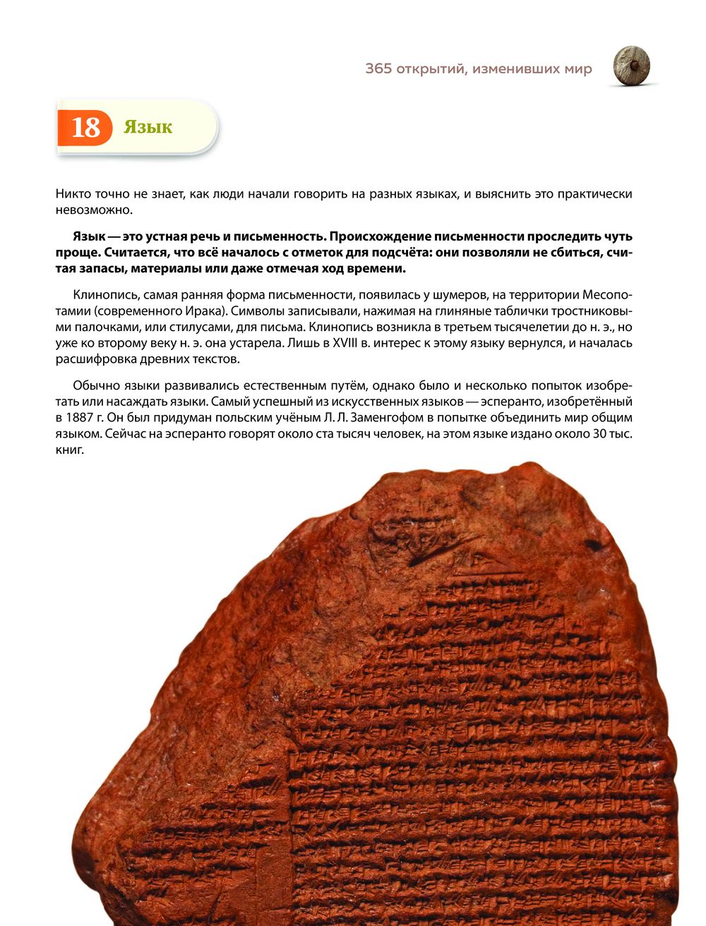 Энциклопедия, с которой будет интересно каждый день! В этой книге представлены 365 самых важных открытий, которые принципиально изменили жизнь человечества: возникновение письменности и книгопечатания, развитие сельского хозяйства, невероятные прорывы в медицине, прогресс архитектурной мысли, покорение воздуха и многое другое. После прочтения этой книги юный читатель впечатлит друзей и учителей своей эрудицией!