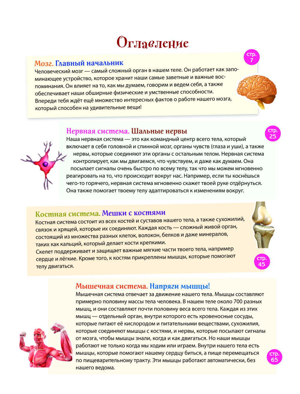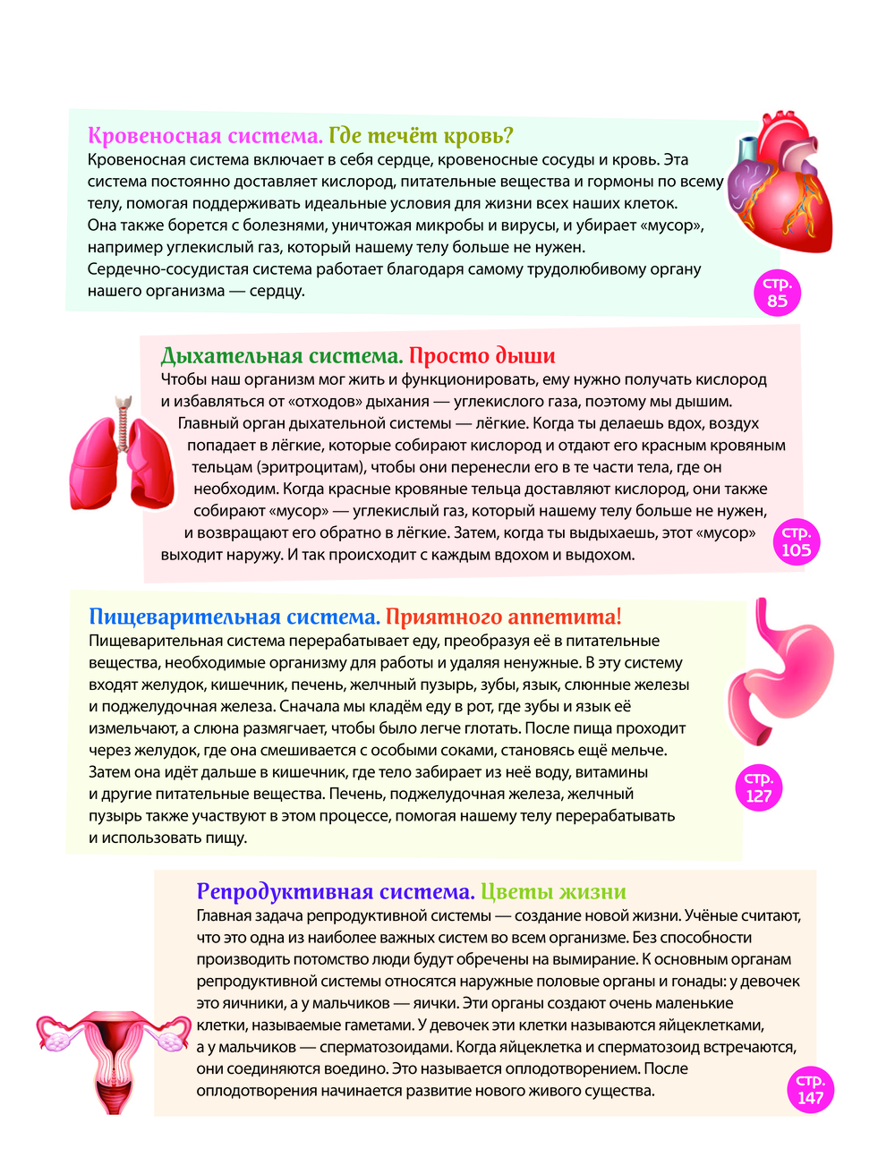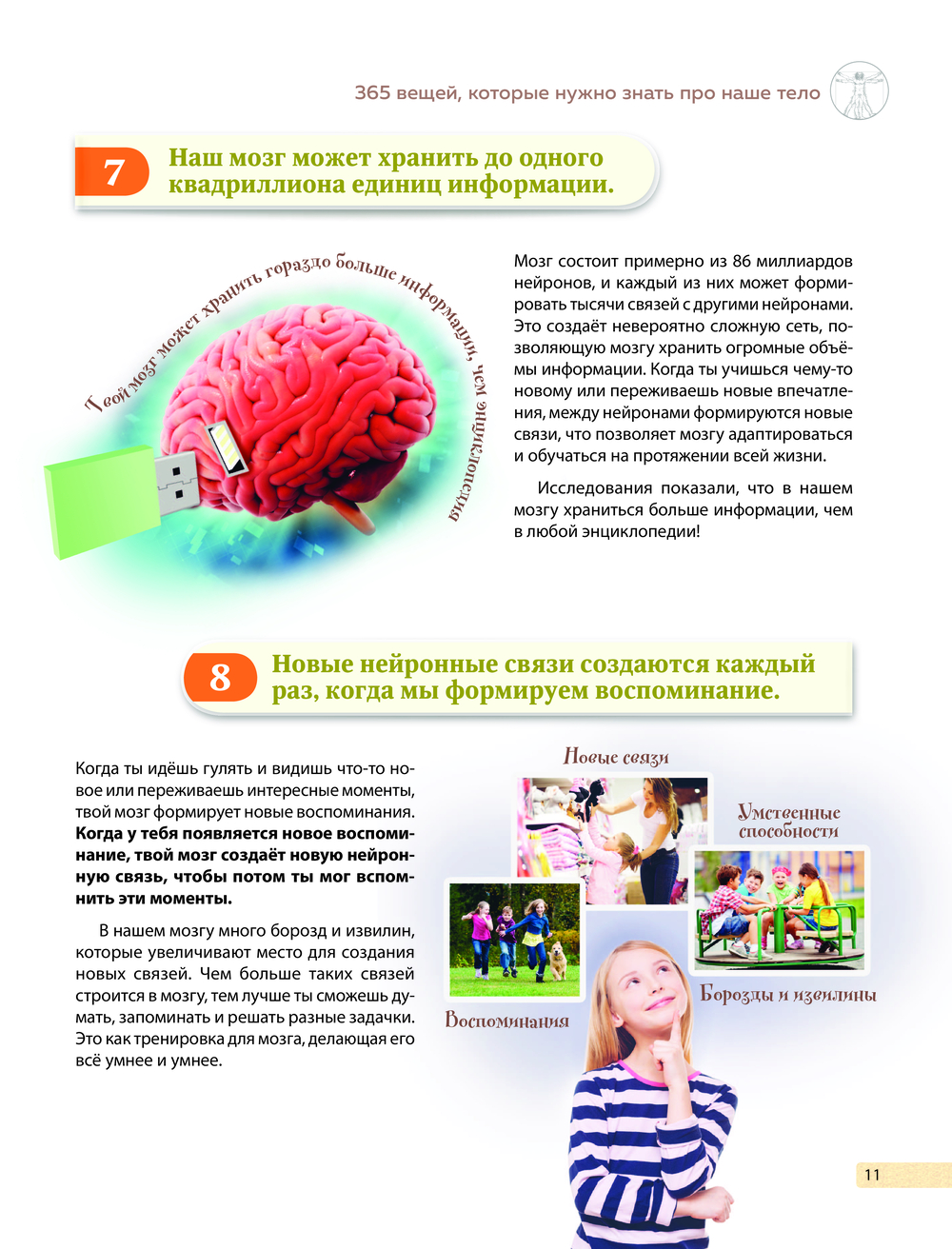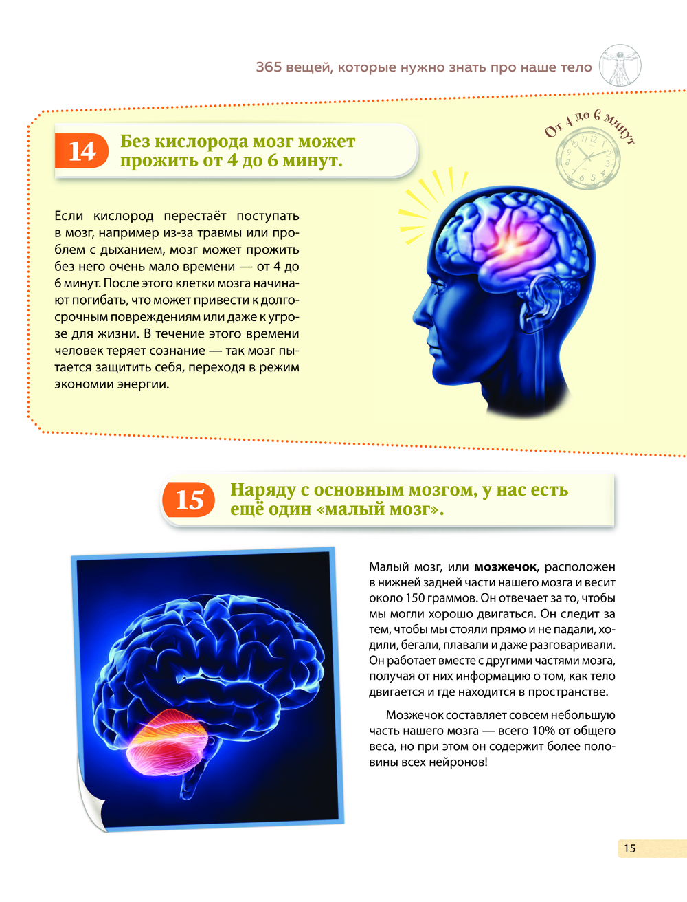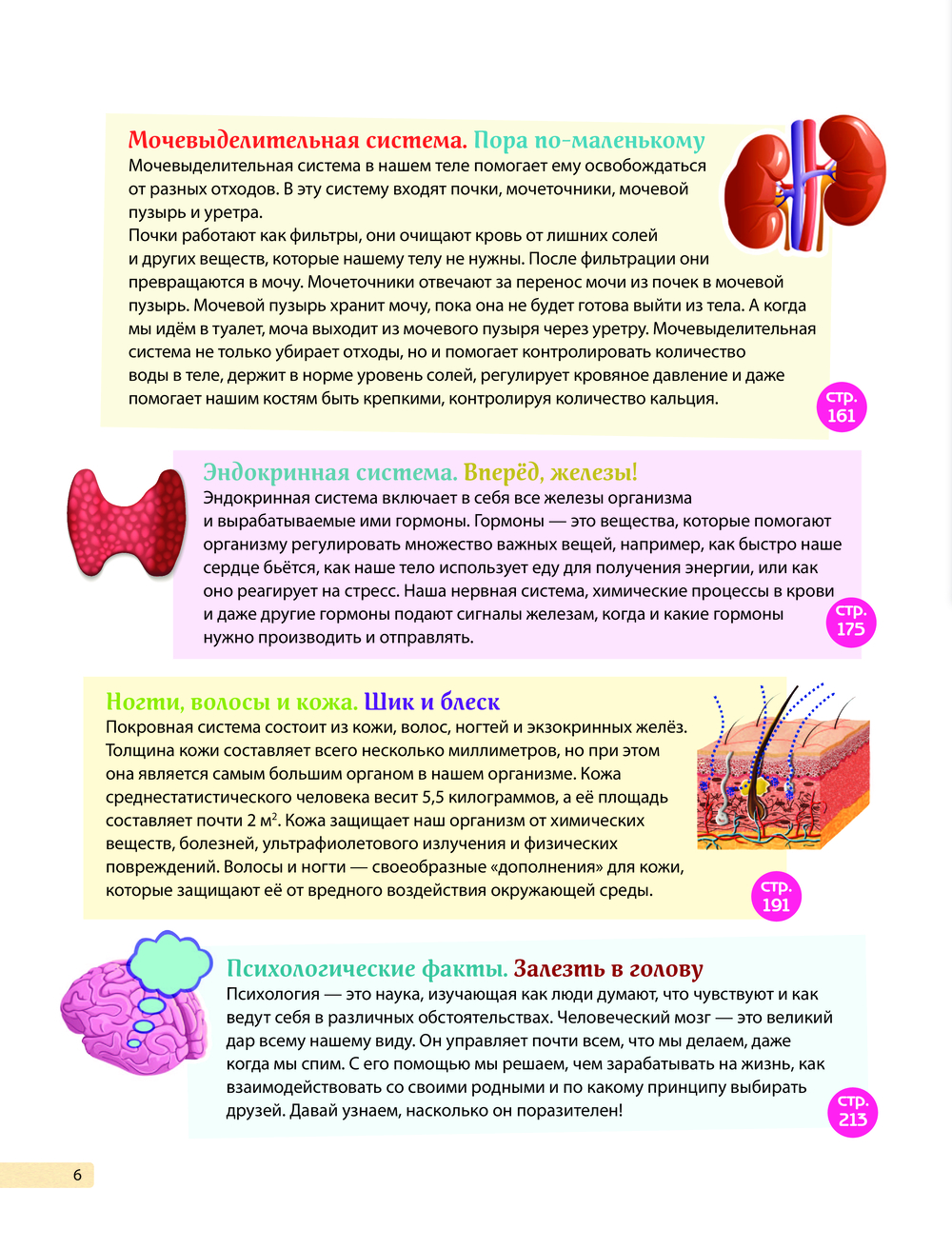 Энциклопедия, с которой будет интересно все 365 дней в году! Ведь в ней представлено ровно 365 самых занимательных фактов про тело человека: устройство каждой системы органов и взаимосвязь всех этих систем, скрытые свойства и умения нашего тела, уникальные способности человеческой психики и многое другое. После прочтения этой книги юный читатель обязательно впечатлит друзей и учителей своей эрудицией!