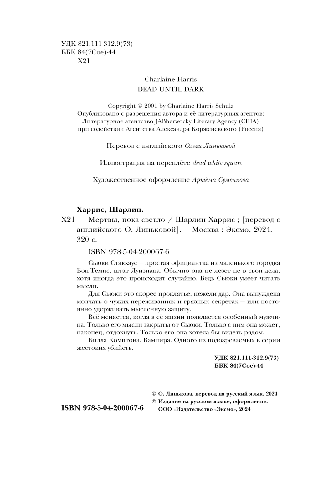 | Название в оригинале | Dead Until Dark (Sookie Stackhouse #1) |