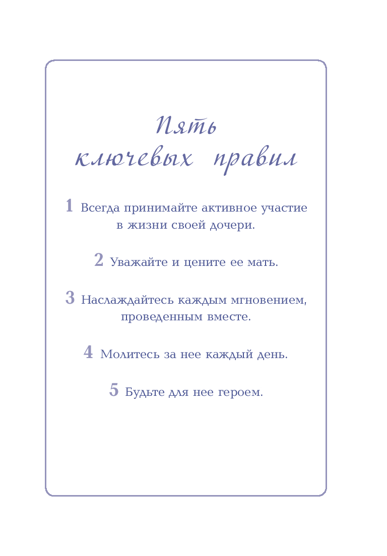 Эта книга для отцов с советами о том, как воспитывать дочь. Научите ее быть смелой, бесстрашной, уверенной в любой ситуации. Расскажите ей обо всем, что знаете. Об уважении и доверии. О единорогах, спорте и мальчиках. А вам эта книга расскажет о радостях и обязанностях, связанных с тем, чтобы показать ей, каким должен быть настоящий мужчина.