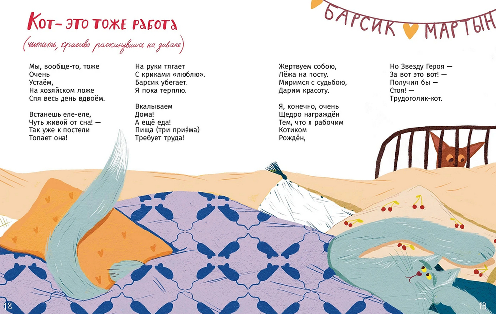 Мартын и Барсик – два кота с отличным чувством юмора и непростым характером. Они очень любят свою хозяйку, поэтому внимательно следят за её питанием, помогают развешивать белье и оберегают от неправильных ухажеров. Сложно с ними хозяйке, конечно, но зато как интересно!
