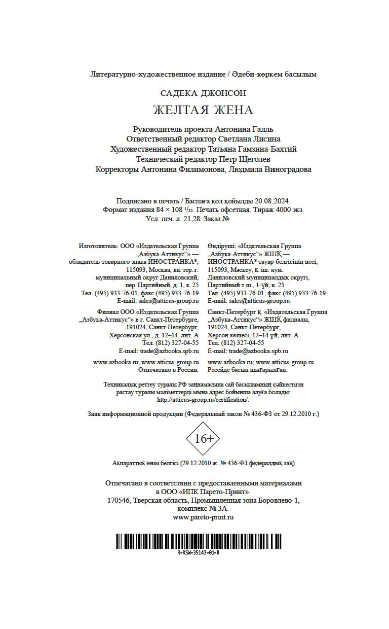 | Изготовитель | ООО "Издательство "Иностранка". 109017, РФ, г. Москва, ул. Пятницкая, 41 |