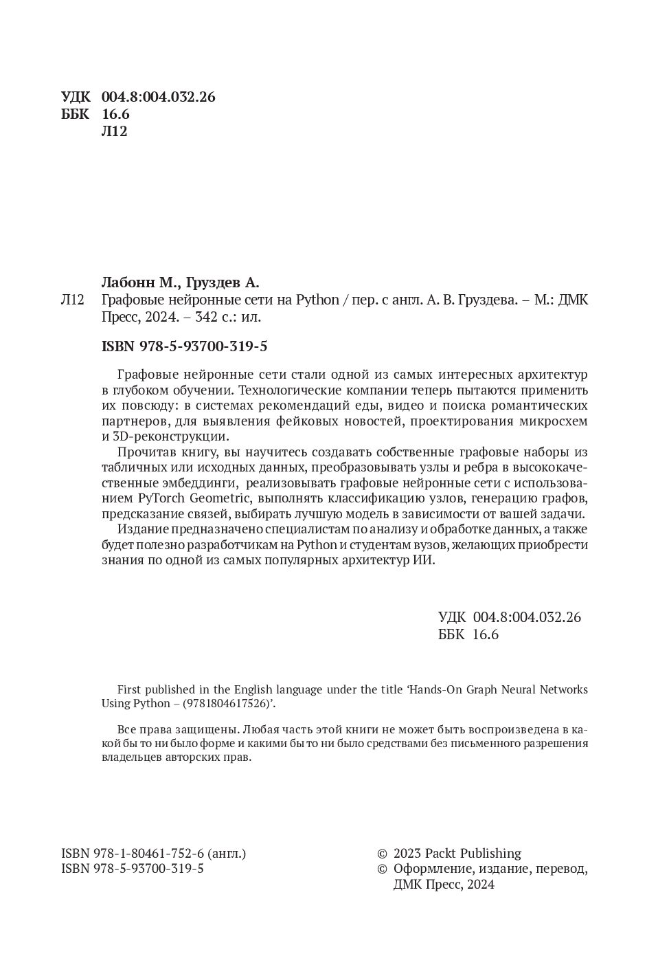 | Название в оригинале | Hands-On Graph Neural Networks Using Python |