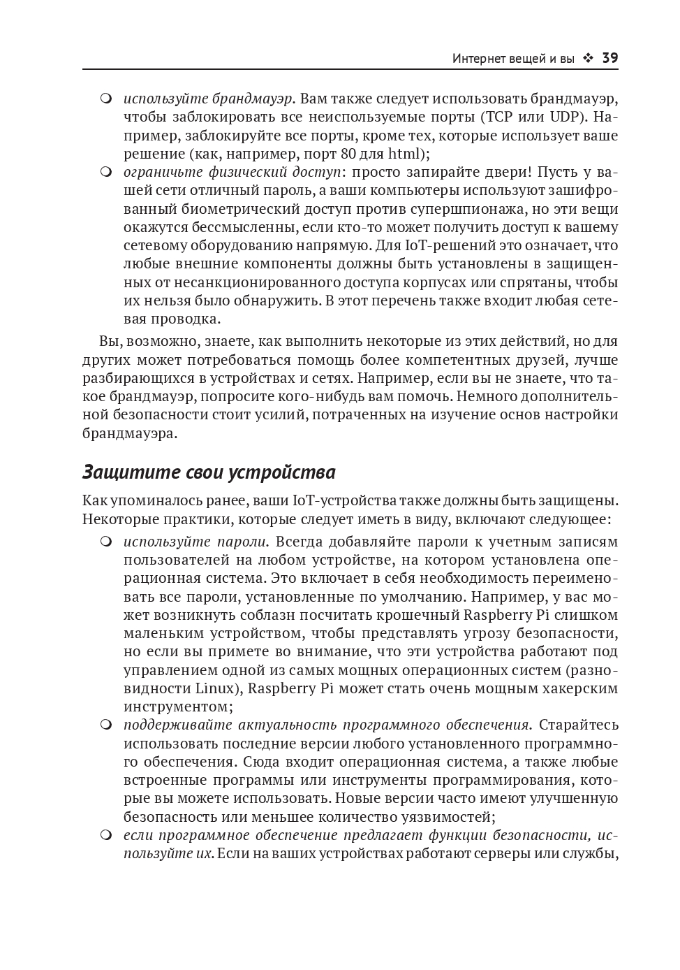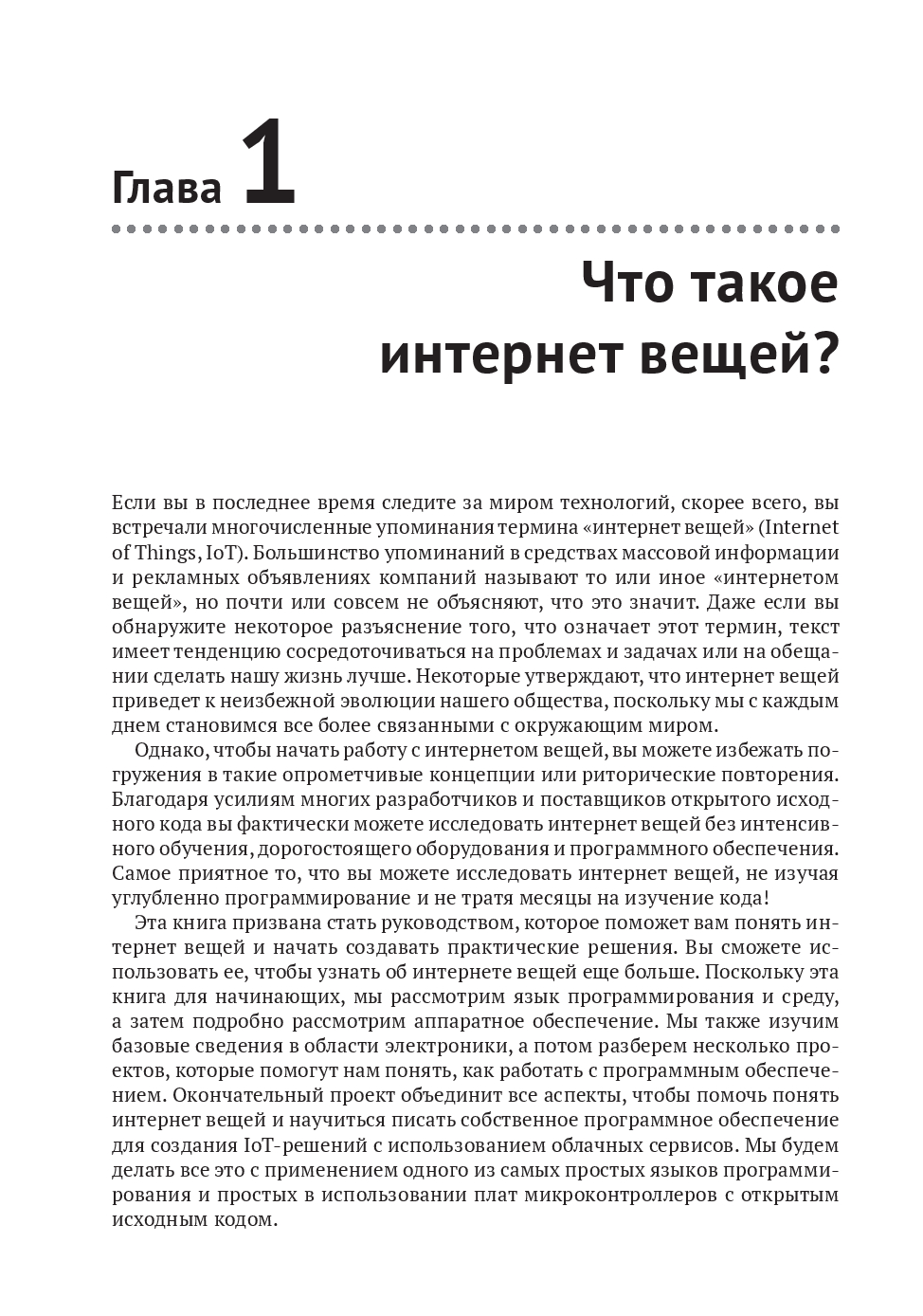 Эта книга поможет вам быстро и легко научиться программировать микроконтроллеры и устройства IoT – интернета вещей. Автор опирается на практический подход, не углубляясь в теорию. Вы изучите ряд проектов, в которых используется MicroPython – разновидность одного из наиболее широко используемых языков сценариев, и на основе этого материала сможете разрабатывать собственные IoT-приложения.