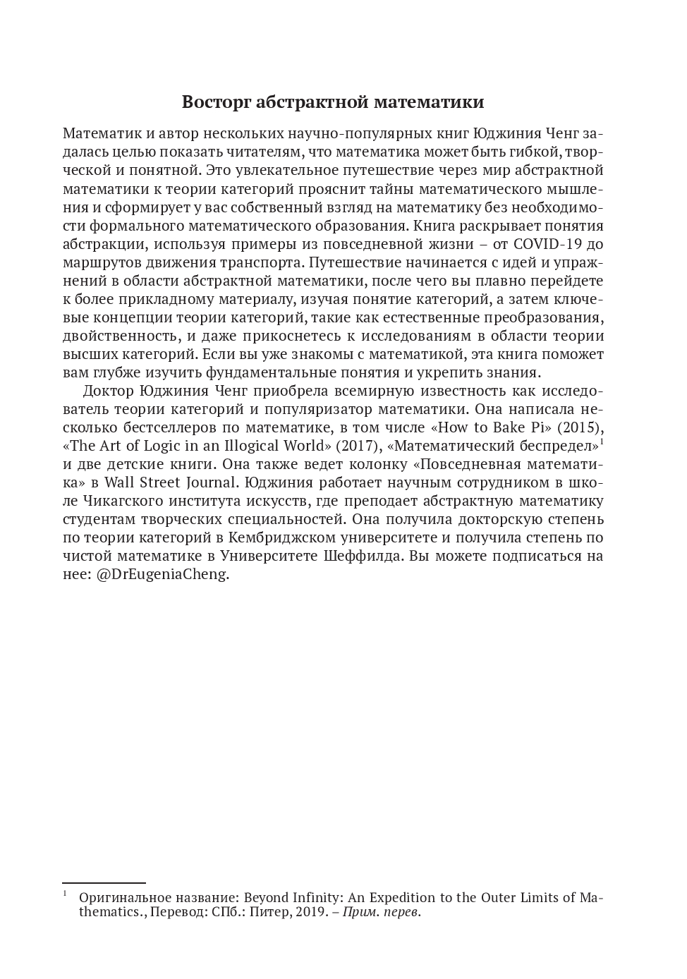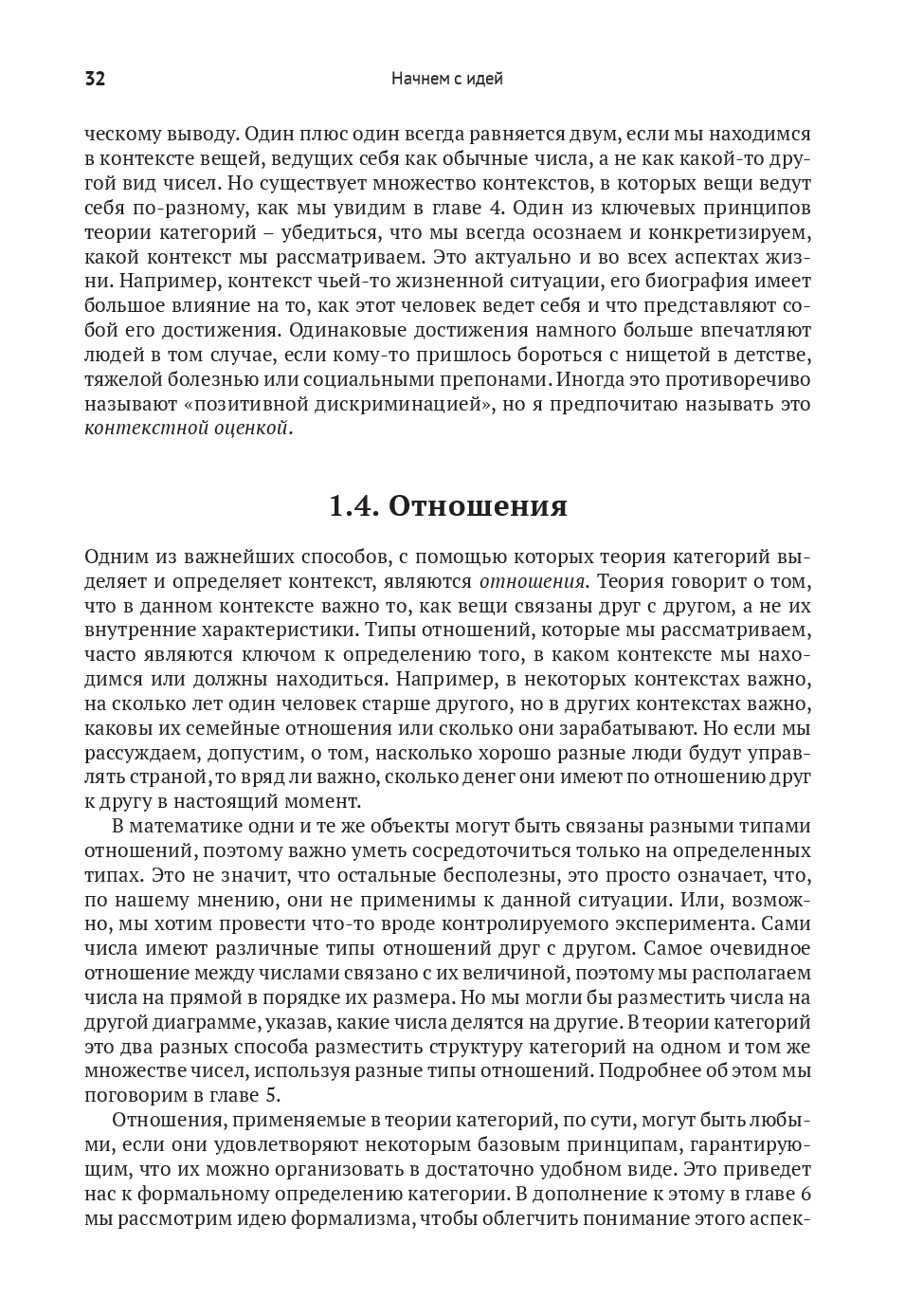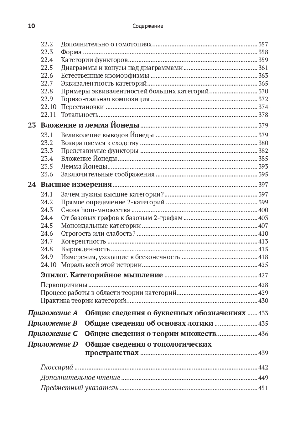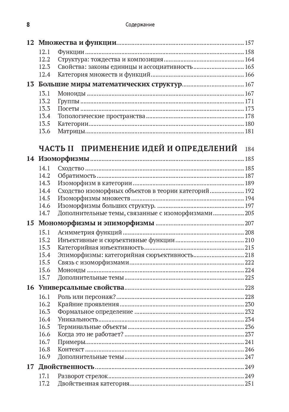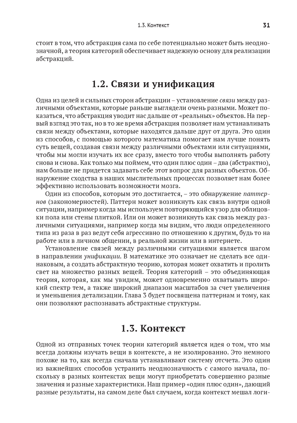 Вы пройдете путь от обзора базовых математических понятий (абстракции, математические паттерны, отношения, категории) к всестороннему изучению различных тем теории категорий.