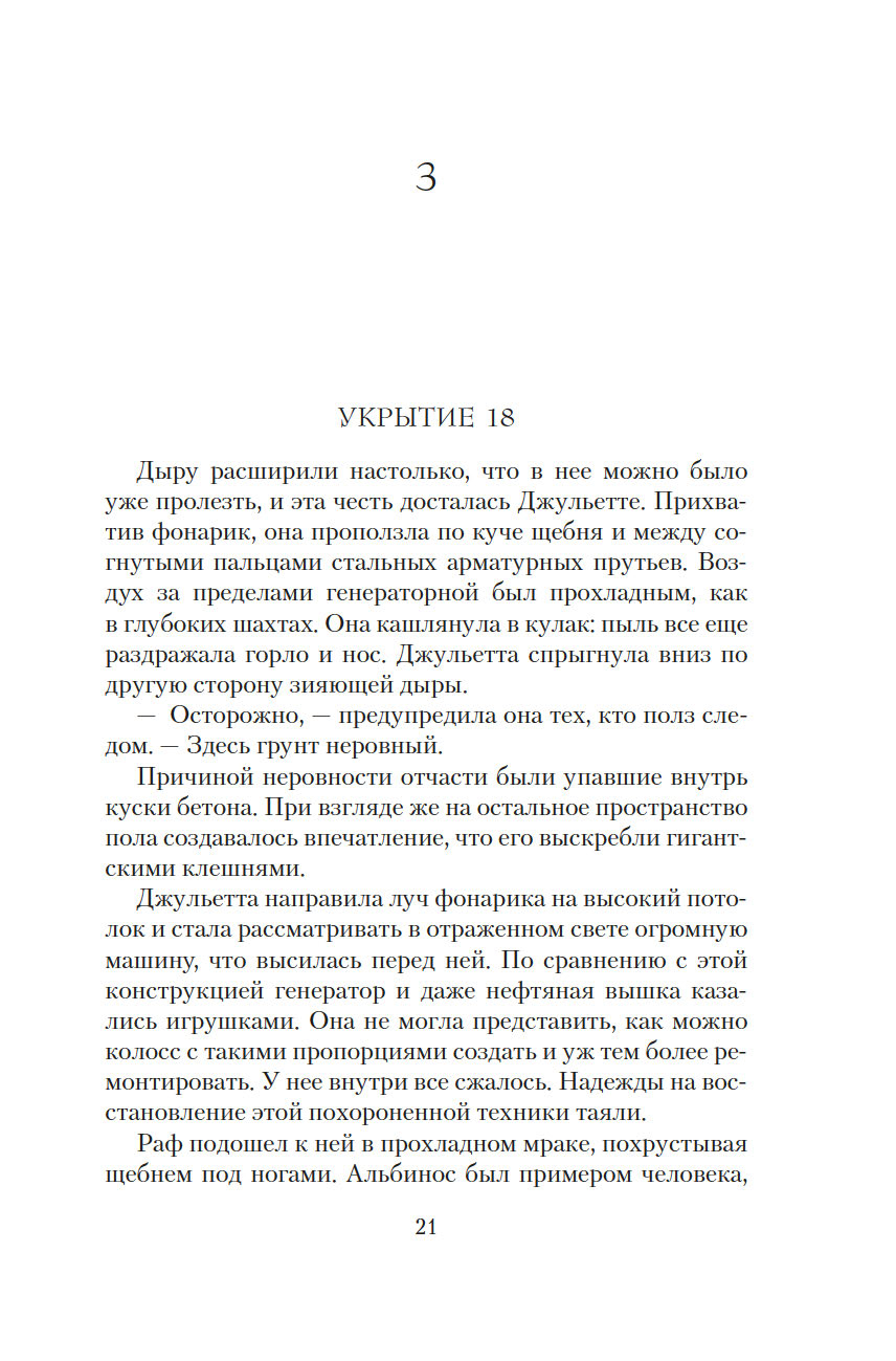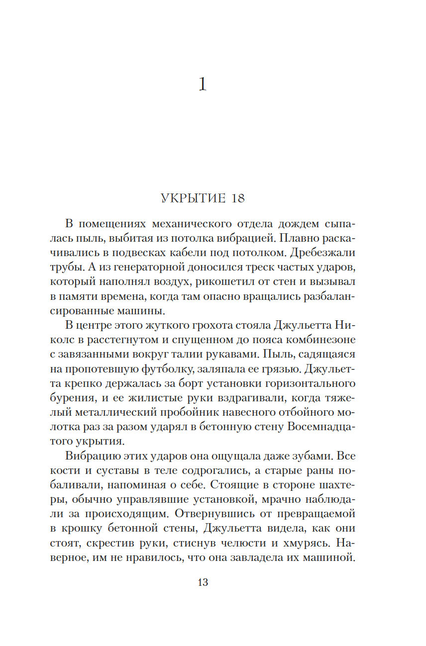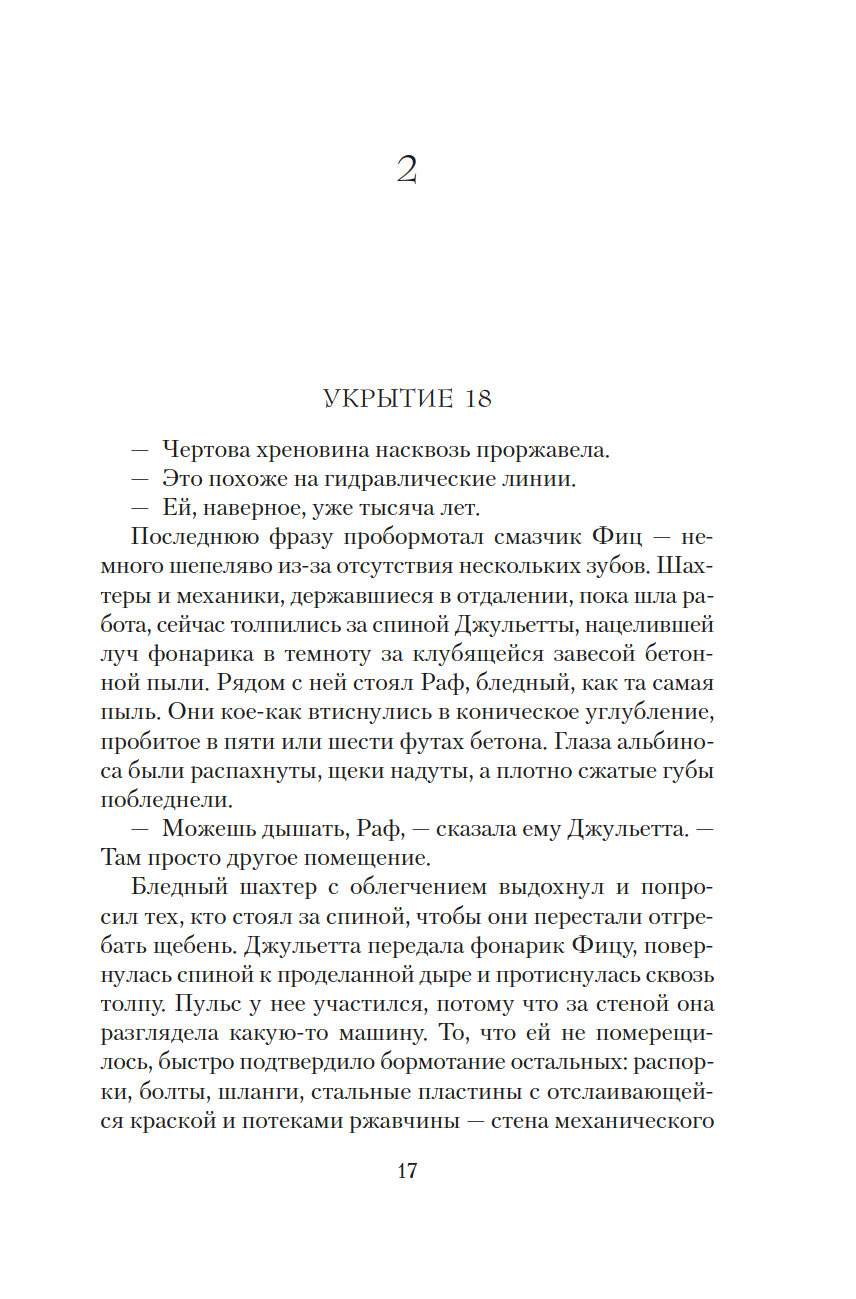 Чтобы начался новый мир, старый мир должен пасть. Джульетта, ныне мэр Восемнадцатого укрытия, не доверяет Первому укрытию, откуда ведется управление остальными. Особо ей ненавистен руководитель Первого Дональд. Но в мире, который состоит из укрытий, нет черного и белого – все здесь в оттенках серого. И возможно, Дональд не страшное бессердечное чудовище, каким его представляет Джульетта, а тот самый счастливый шанс на пути к выживанию человечества.