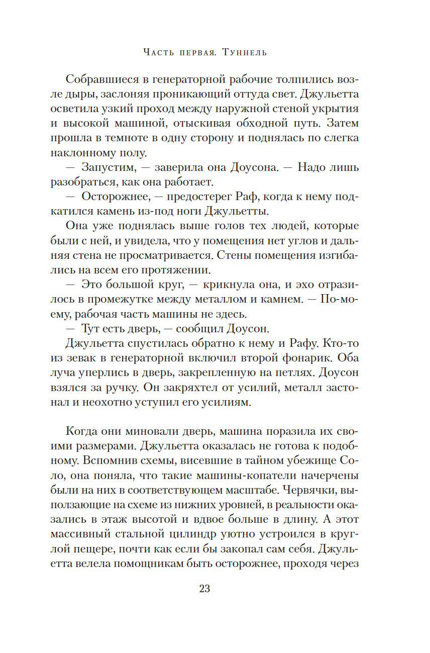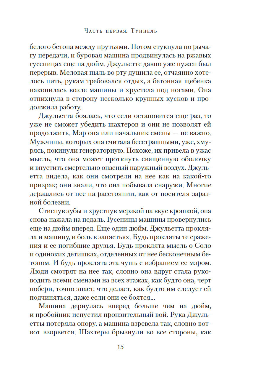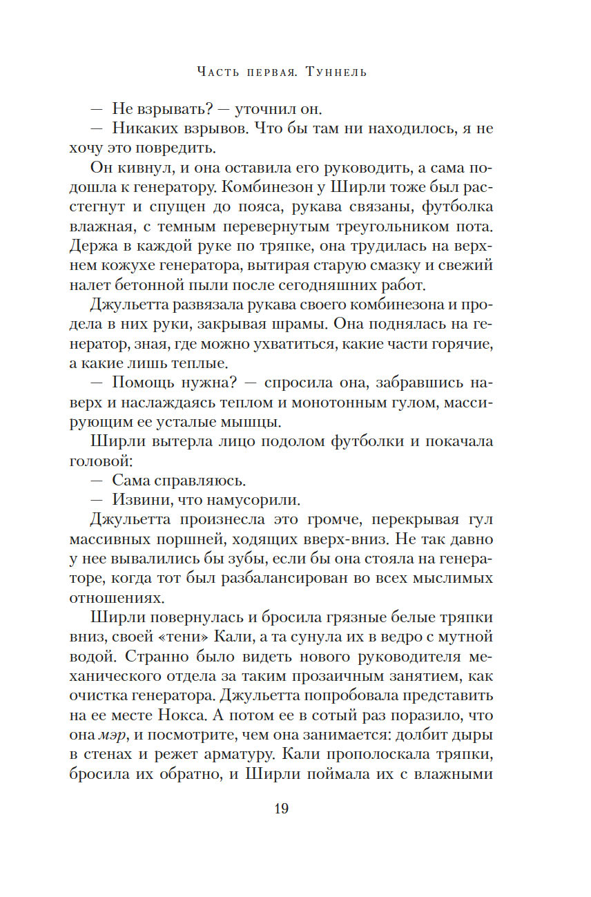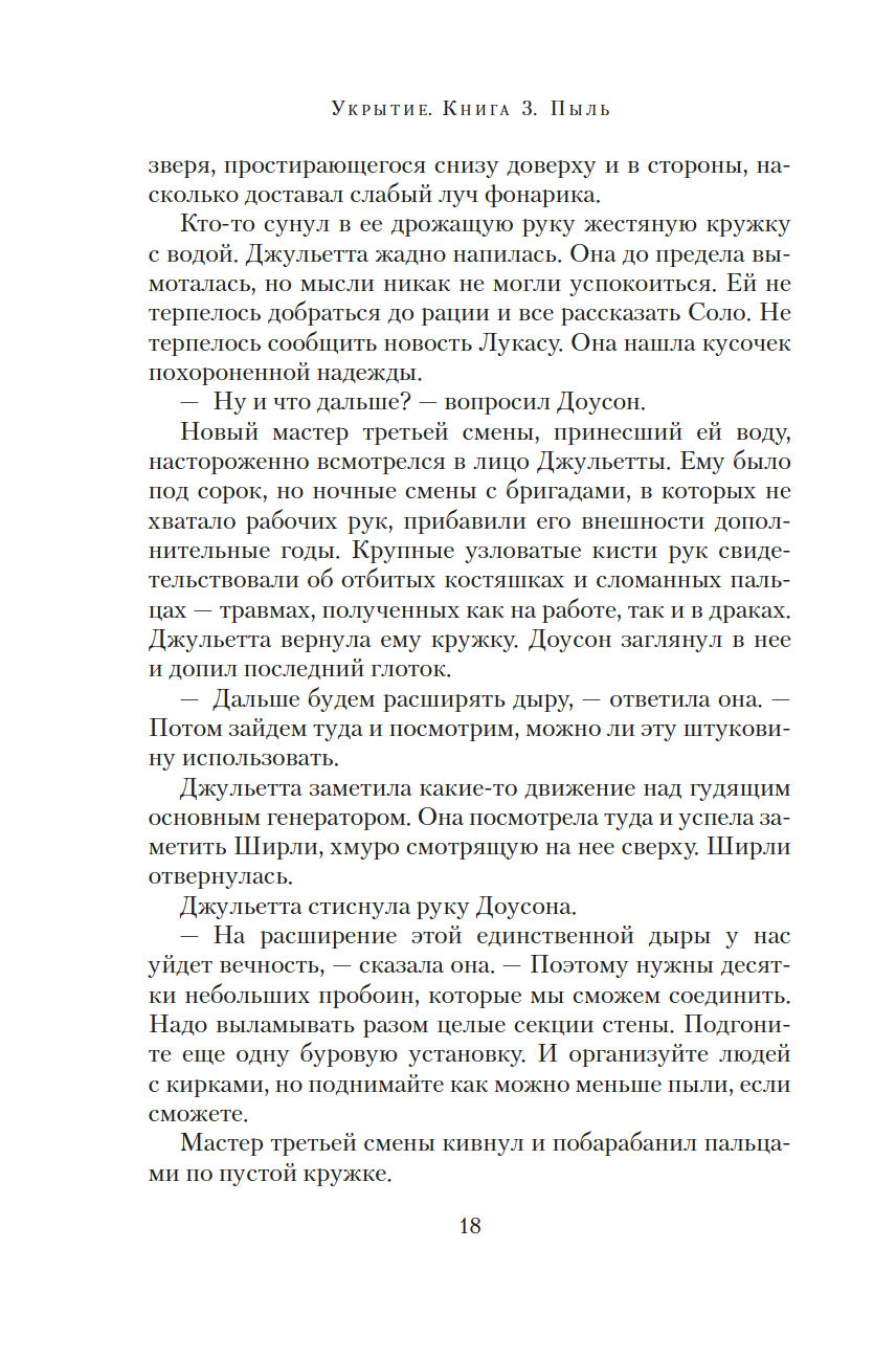 Чтобы начался новый мир, старый мир должен пасть. Джульетта, ныне мэр Восемнадцатого укрытия, не доверяет Первому укрытию, откуда ведется управление остальными. Особо ей ненавистен руководитель Первого Дональд. Но в мире, который состоит из укрытий, нет черного и белого – все здесь в оттенках серого. И возможно, Дональд не страшное бессердечное чудовище, каким его представляет Джульетта, а тот самый счастливый шанс на пути к выживанию человечества.