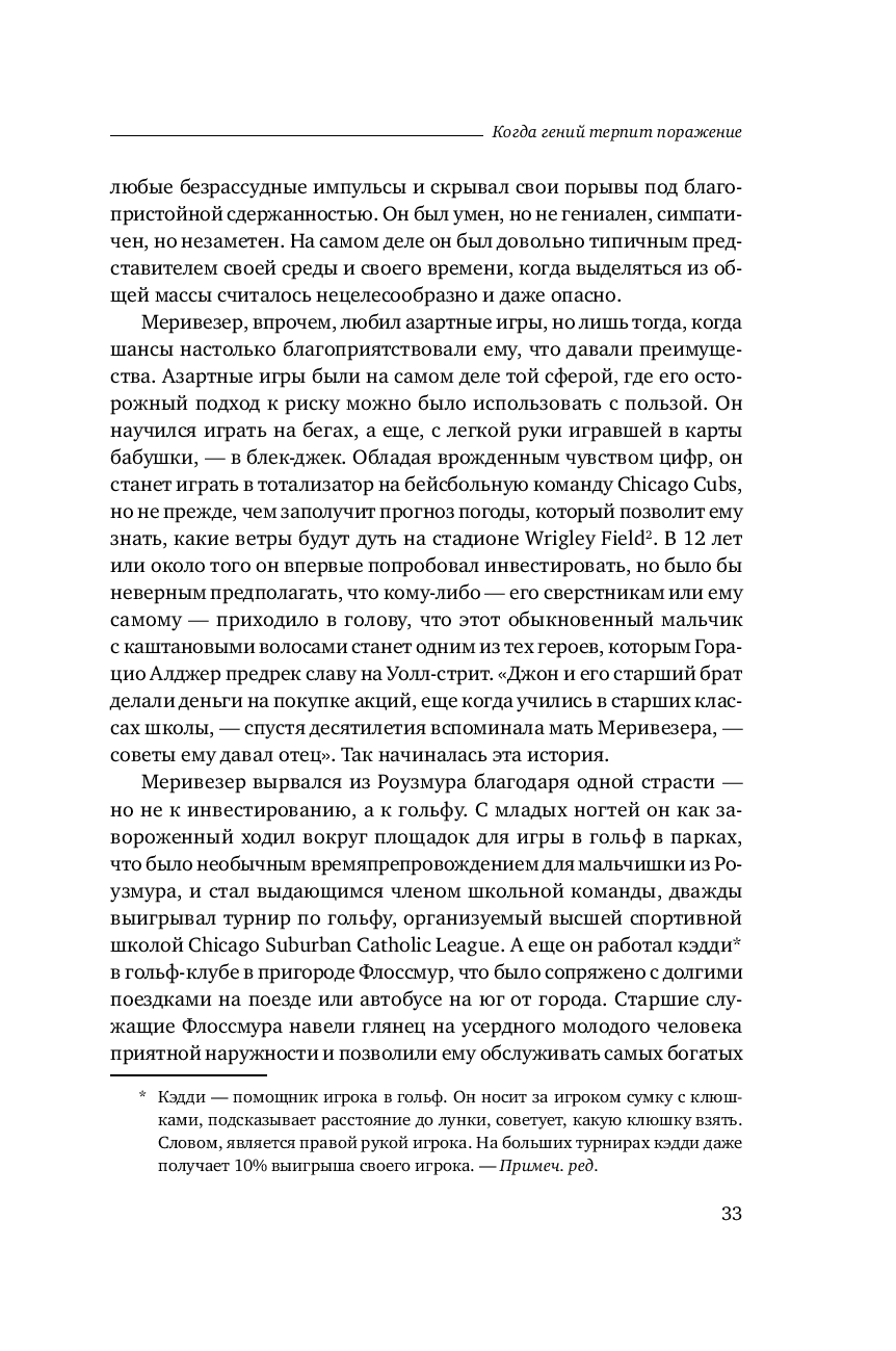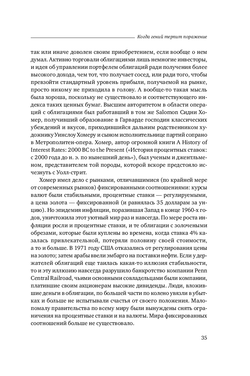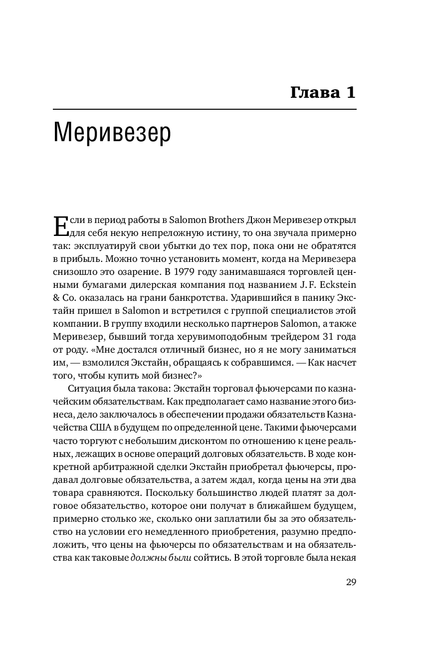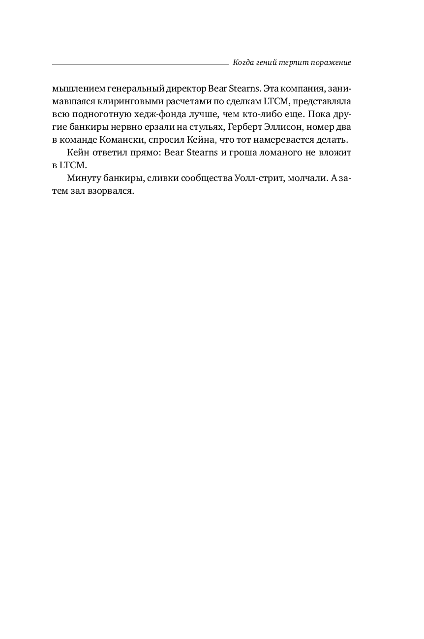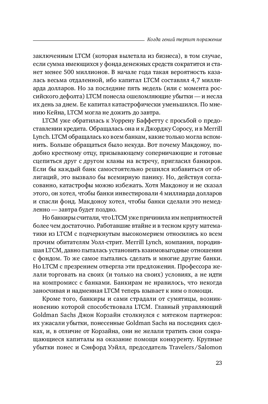 Бесстрастная статистика свидетельствует, что ни одна компания не застрахована от неудачи. В мире бизнеса падение – обыденное явление, которое случается гораздо чаще, чем успех. И все таки рассказанную Р. Ловенстайном историю хедж фонда Long Term Capital Management не назовешь банальной. Хотя бы потому, что эта компания была уникальна по своему интеллектуальному потенциалу и техническому оснащению.