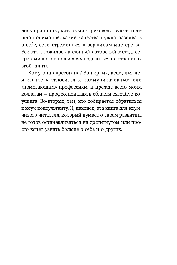 Разобраться во всем этом, осознать свои цели, определить успешные стратегии поведения, отделить истинное и ценное от наносного и временного, спокойно взглянуть на собственные ограничения, принять себя как целостную личность, наметить точки роста и направления развития позволяет коучинг. Автор приглашает читателя в свою "мастерскую" и делится профессиональными секретами.
