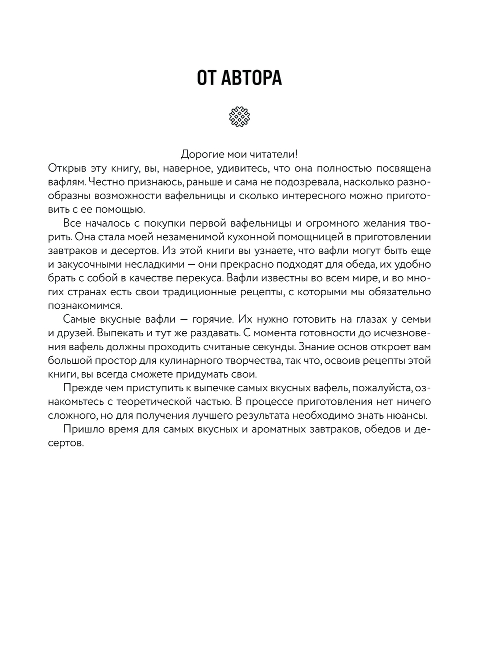 Попробуйте их все! В книге вас ждут 37 рецептов вафель и множество сладких и соленых топингов и соусов: