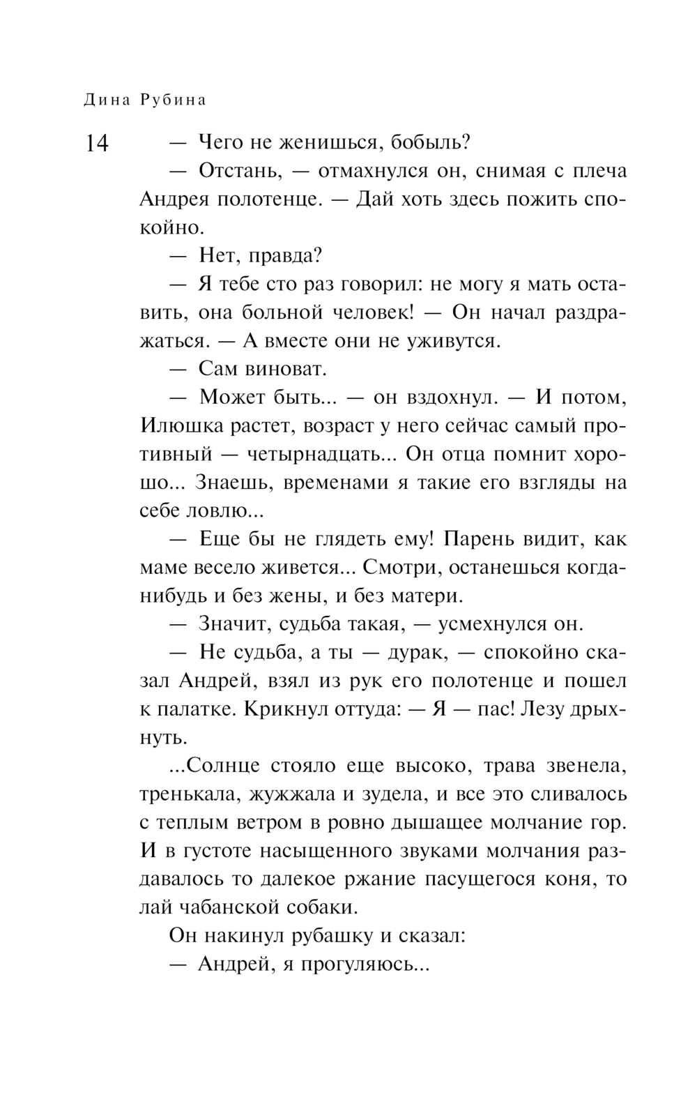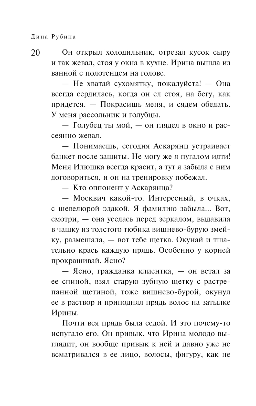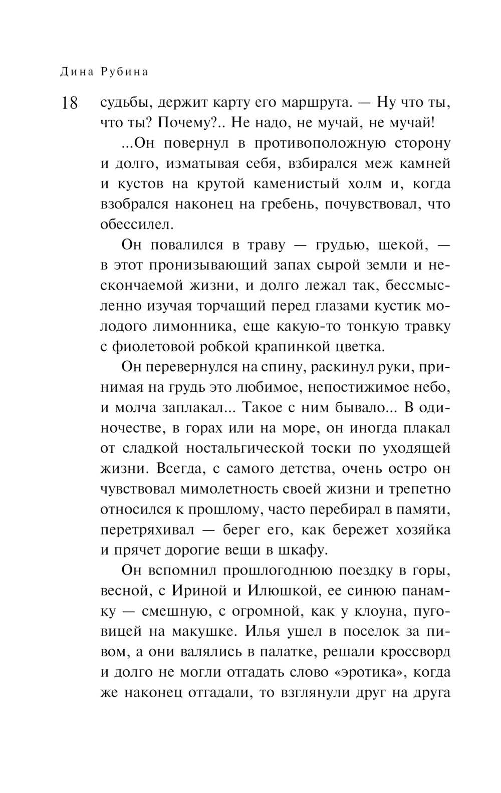 В рассказах сценки из жизни, происшествия, свидетелем которых становилась Дина Рубина. Из них получилась эта умная книга, написанная со свойственным писателю юмором и самоиронией. Вы не раз улыбнетесь в процессе чтения, углубитесь в водоворот событий, где стремление к доброму, высокому и прекрасному сильнее любых обстоятельств, и нет ничего важнее.