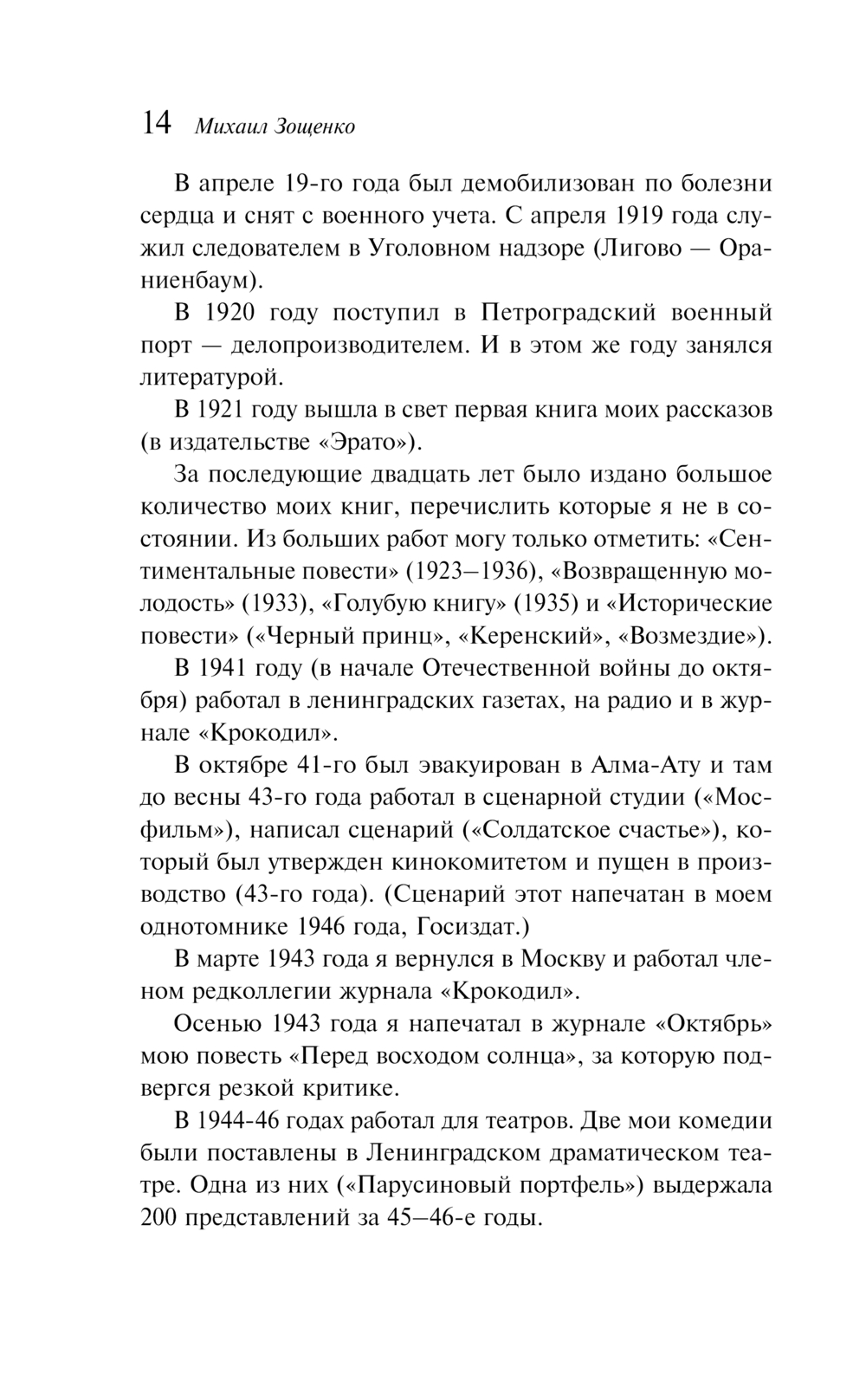 Но по-настоящему нашел себя в писательстве. Зощенко умел подметить абсурдное в окружающей действительности. Читая его рассказы, не знаешь – то ли плакать, то ли смеяться. Ирония жизни и человеческих взаимоотношений на фоне советского быта погружает в атмосферу эпохи 20-х-30-х годов.