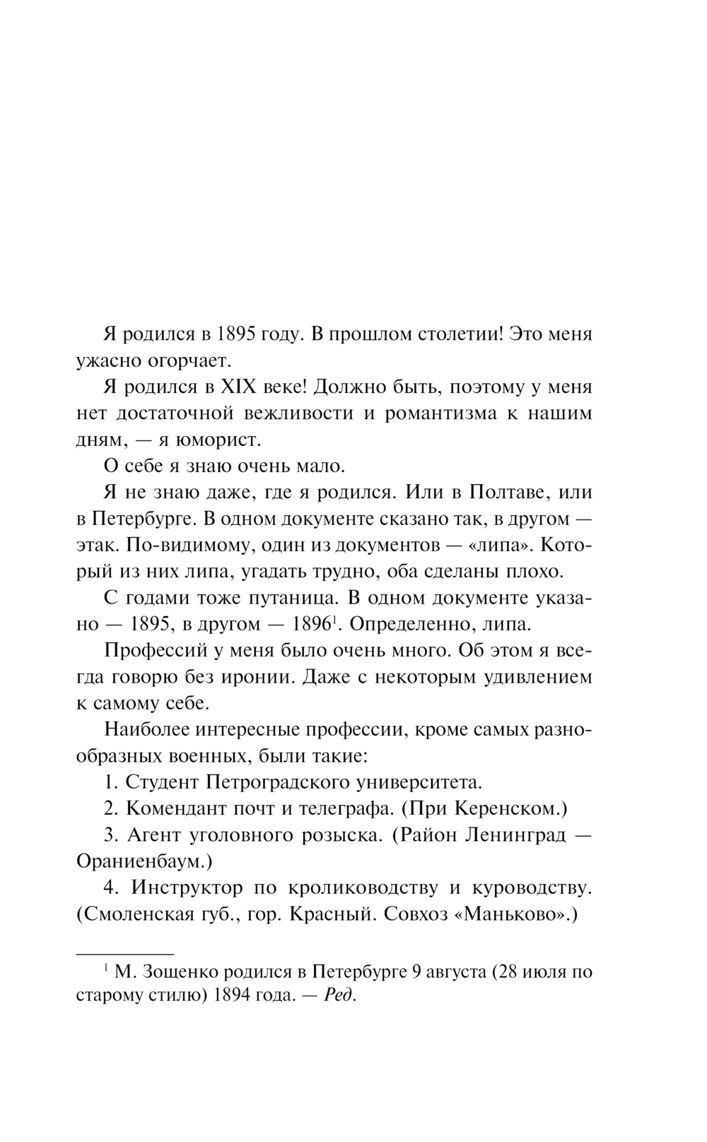 Михаил Зощенко (1894-1958) пережил две мировые войны и критику советской власти. Успел поработать милиционером, счетоводом, сапожником, инструктором по птицеводству, телефонистом пограничной охраны, агентом уголовного розыска.