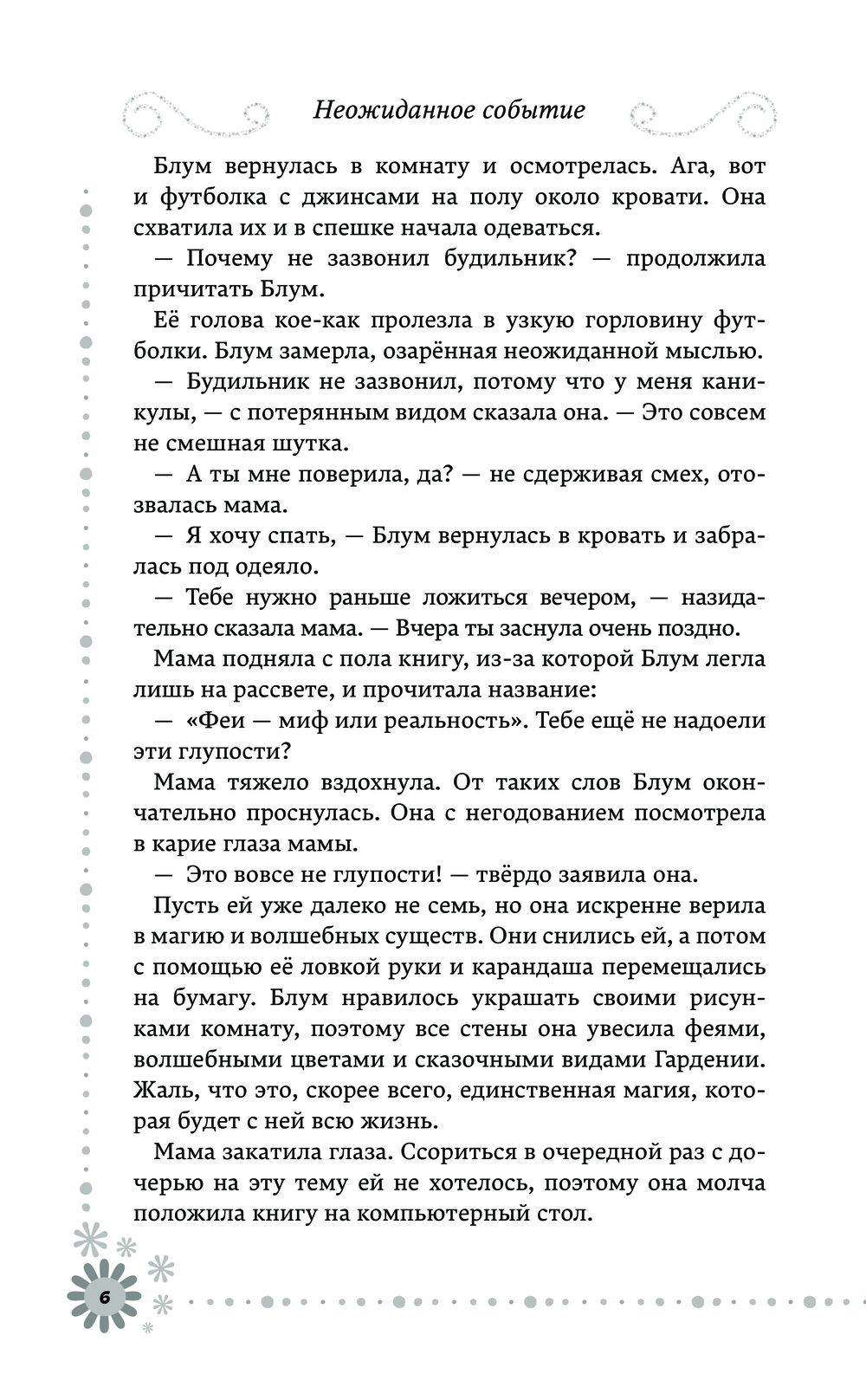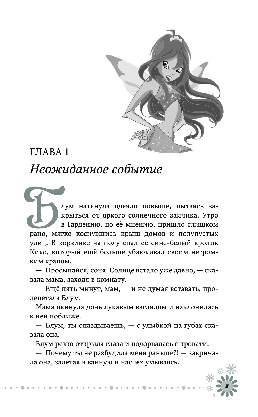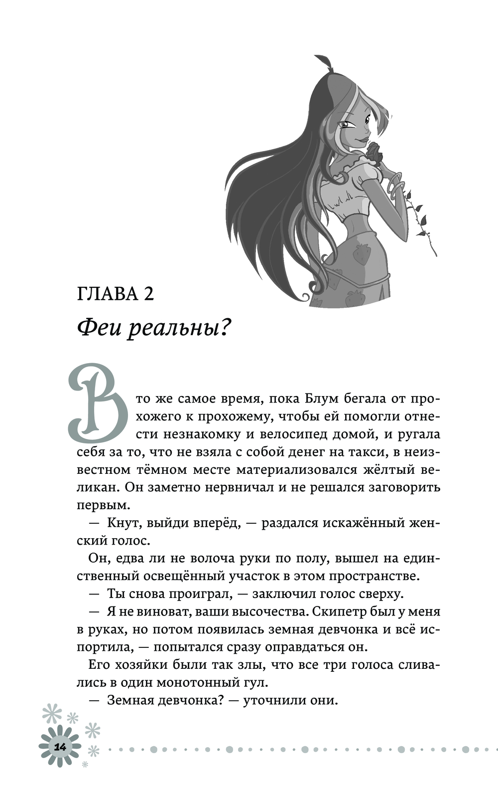 В этой книге вас ждет пересказ первого сезона мультсериала, вставки с интересными фактами и цветные вклейки из мультика, ну и, конечно же, Блум, Флора, Стела, Муза, Текна.
