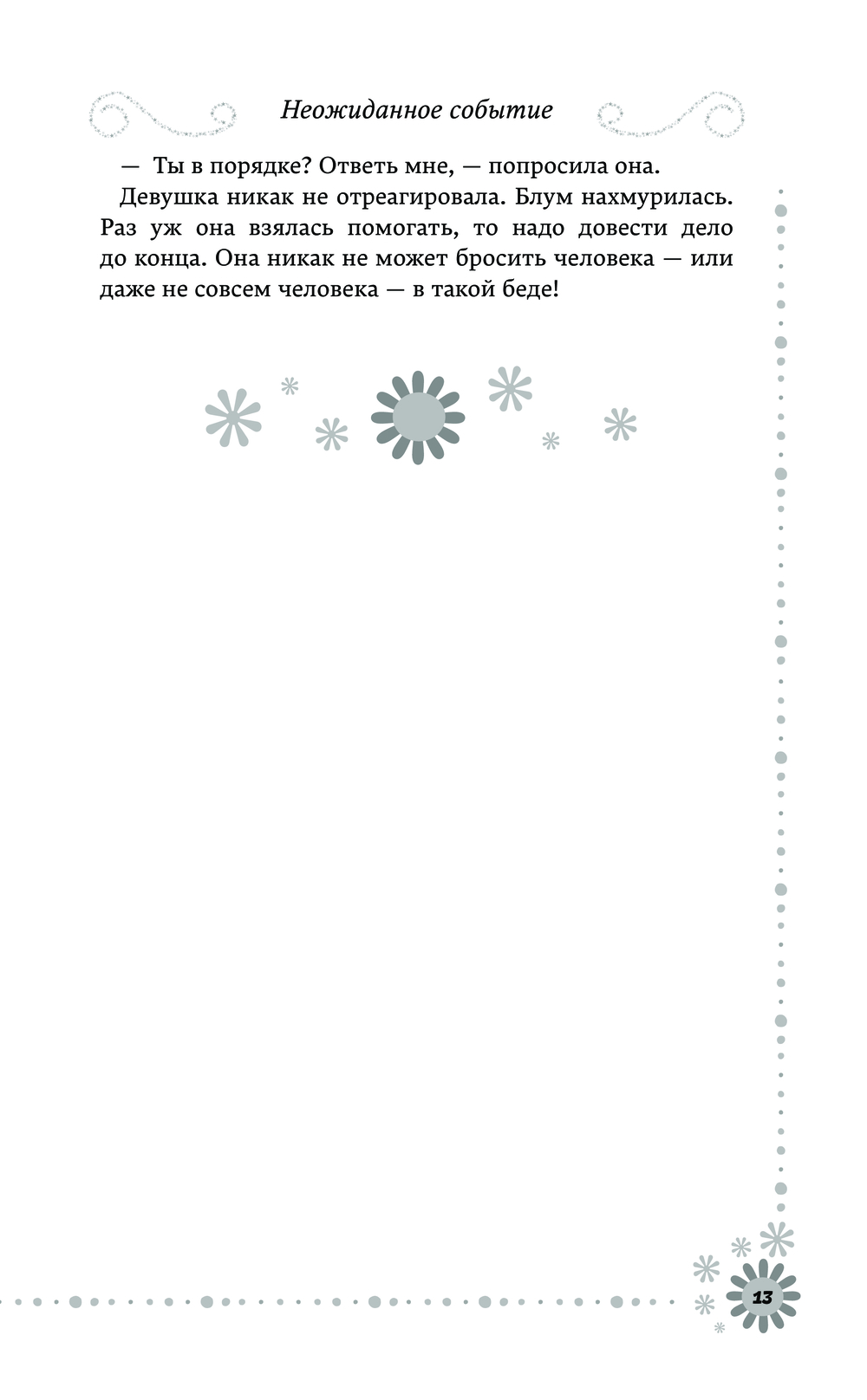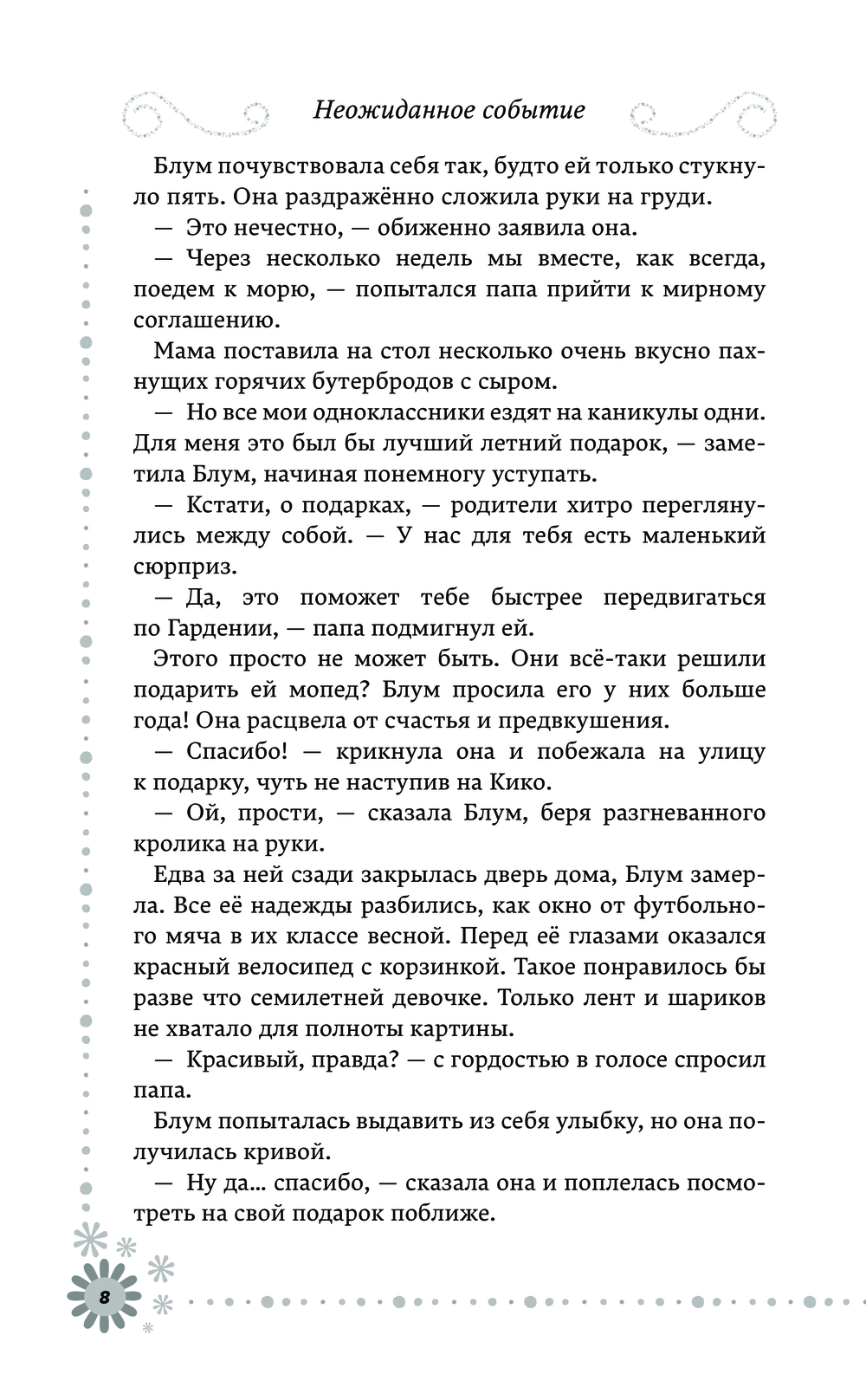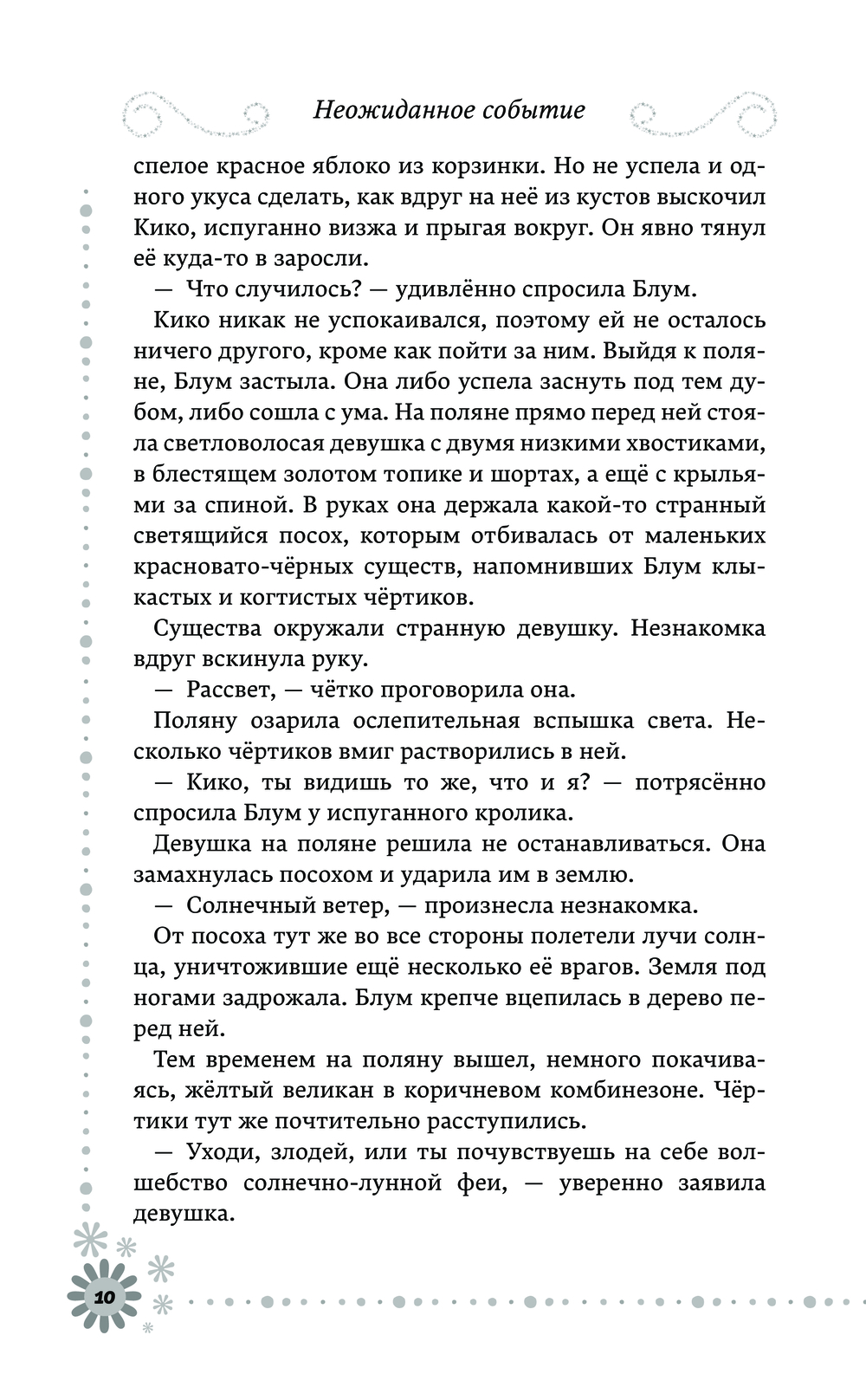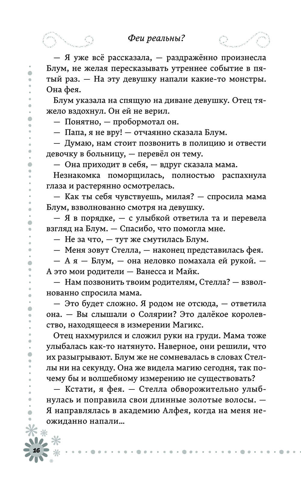 В этой книге вас ждет пересказ первого сезона мультсериала, вставки с интересными фактами и цветные вклейки из мультика, ну и, конечно же, Блум, Флора, Стела, Муза, Текна.