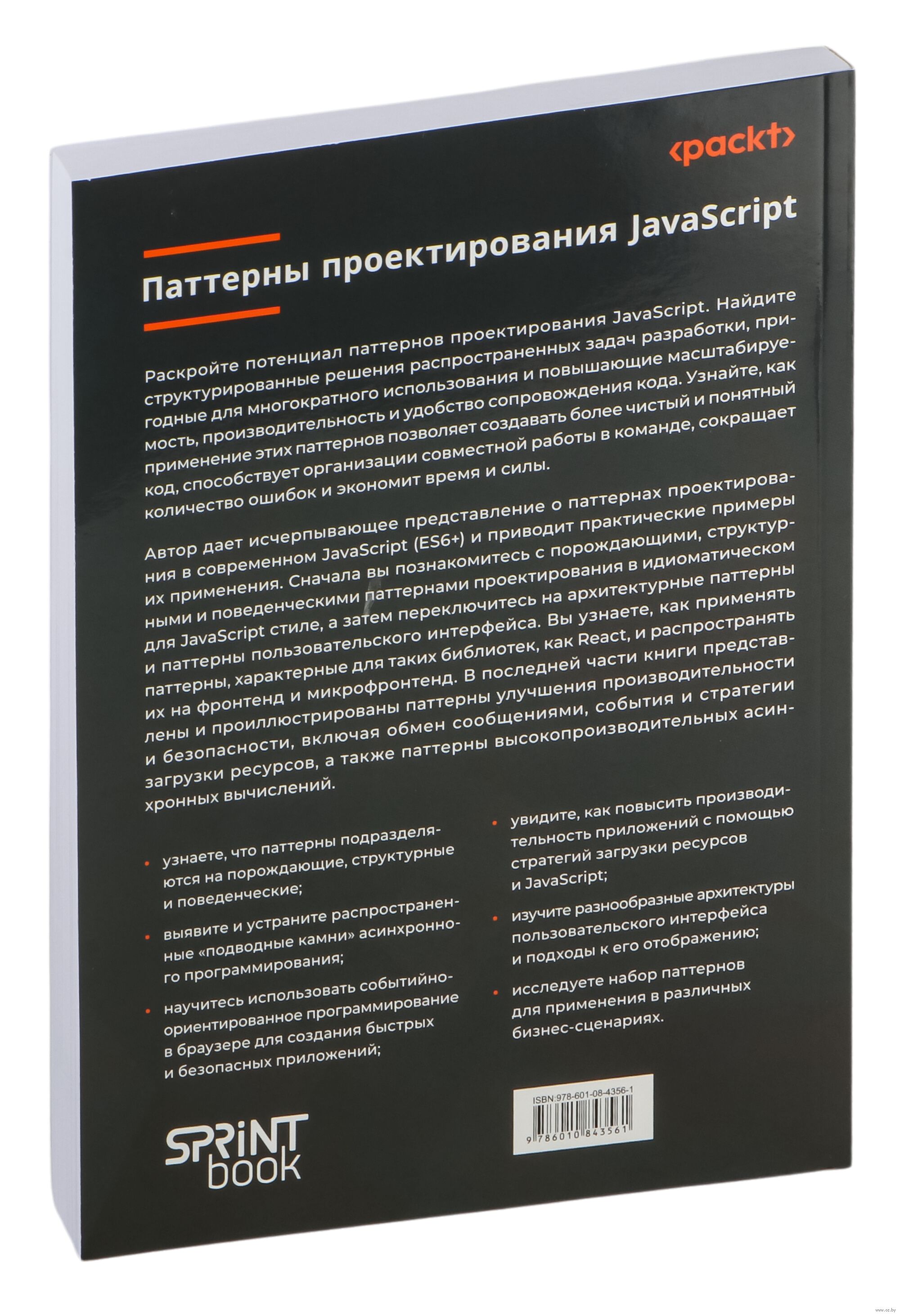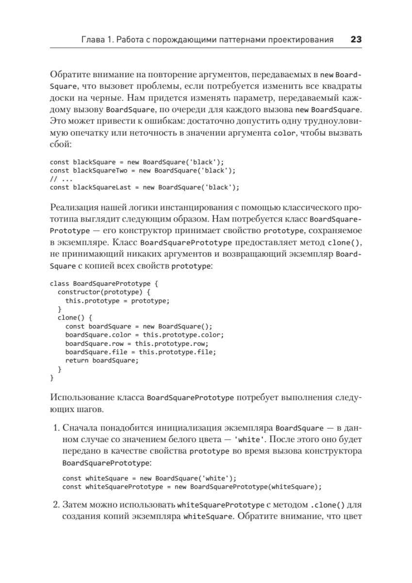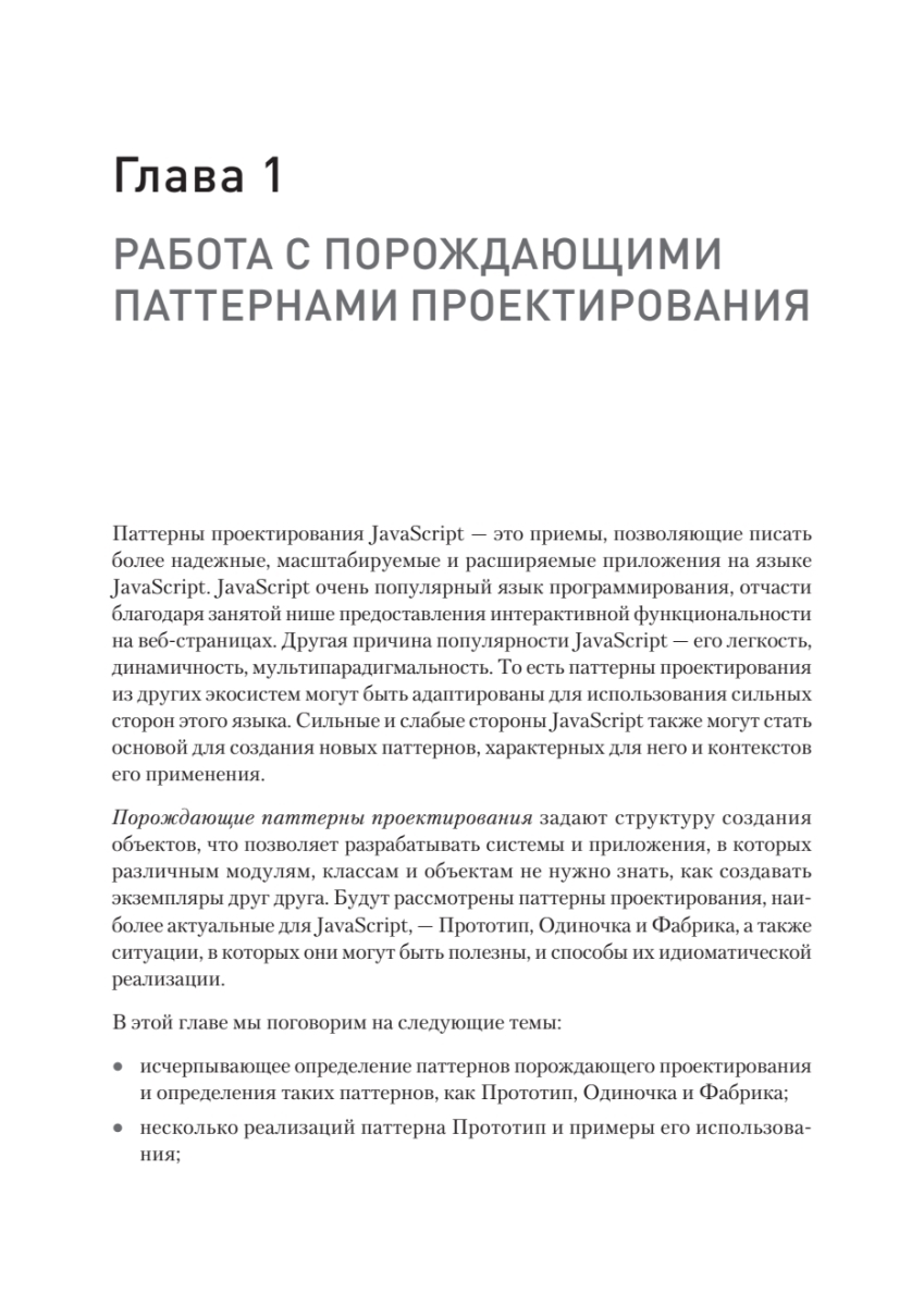 Автор дает исчерпывающее представление о паттернах проектирования в современном JavaScript (ES6+) и приводит практические примеры их применения. Сначала вы познакомитесь с порождающими, структурными и поведенческими паттернами проектирования в идиоматическом для JavaScript стиле, а затем переключитесь на архитектурные паттерны и паттерны пользовательского интерфейса. Вы узнаете, как применять паттерны, характерные для таких библиотек, как React, и распространять их на фронтенд и микрофронтенд. В последней части книги представлены и проиллюстрированы паттерны улучшения производительности и безопасности, включая обмен сообщениями, события и стратегии загрузки ресурсов, а также паттерны высокопроизводительных асинхронных вычислений.