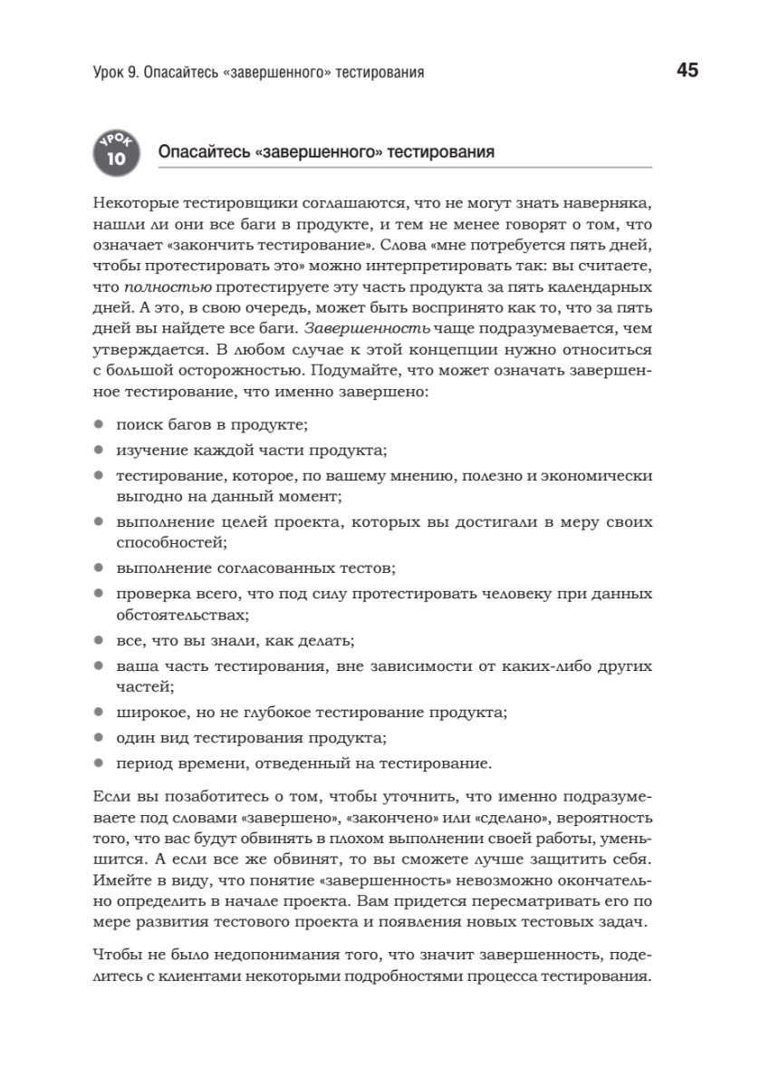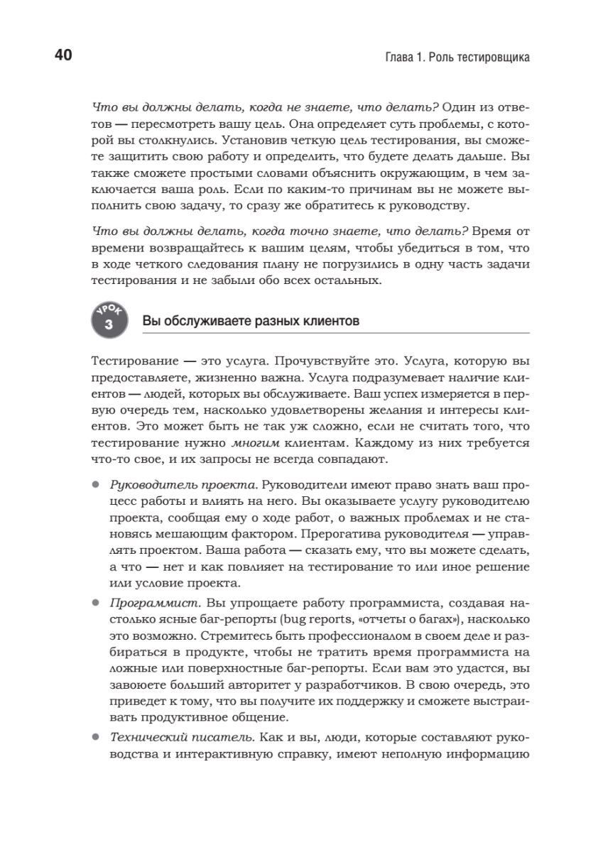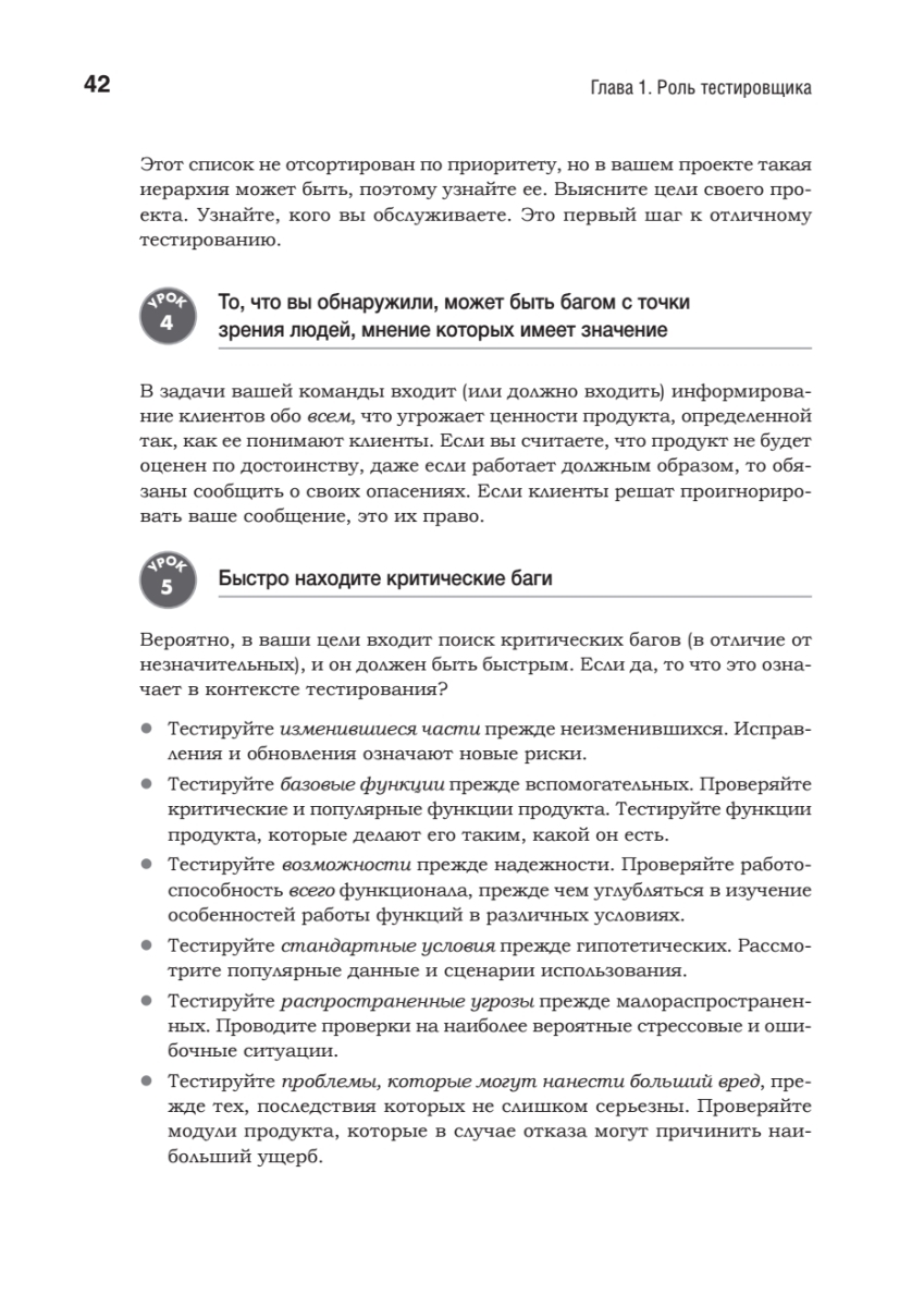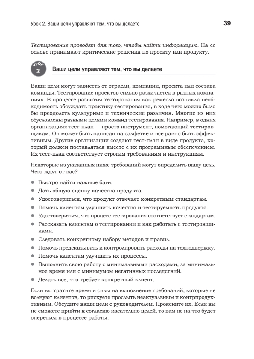 Каждый урок начинается с утверждения, относящегося к тестированию программного обеспечения, за которым следует объяснение или пример, показывающий, как, когда и почему применяется этот урок.