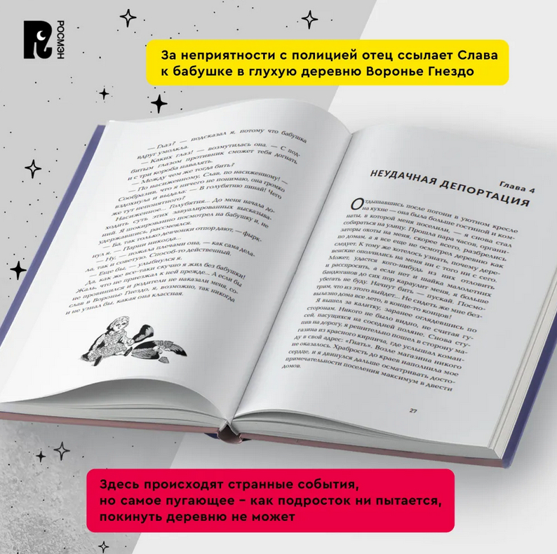 Фанат граффити и талантливый райтер Слав чудом избегает неприятностей с полицией, но попадает в худшую переделку. В воспитательных целях отец отправляет его на все лето "в ссылку": в глухую деревню Воронье Гнездо к бабушке. Там со Славом сразу же начинают происходить странные и пугающие происшествия, но как он ни пытается, покинуть деревню не может. А вскоре выясняется, что он не единственный пленник этого загадочного места. Какое проклятие нависло над деревней? Что так цепко и злобно держит ее жителей? Если Слав и его новые друзья – Глеб, Инга, Кики, Рыжий и Зоя – не смогут разгадать тайну Вороньего Гнезда, то останутся здесь навсегда.