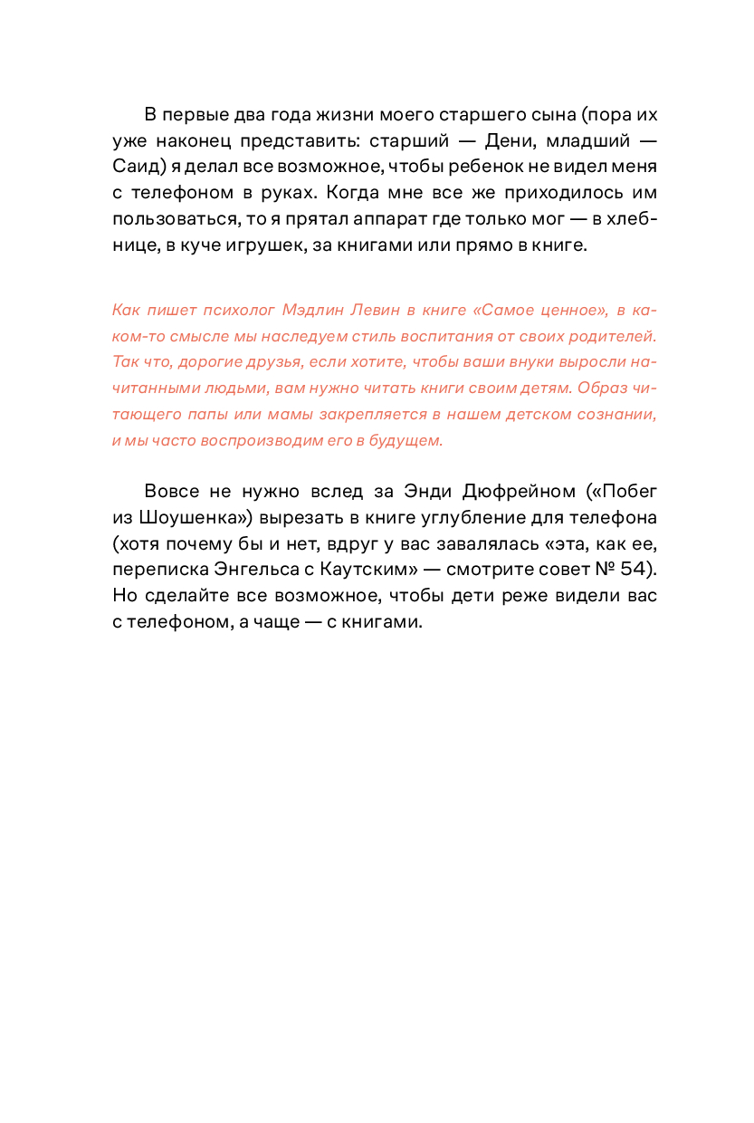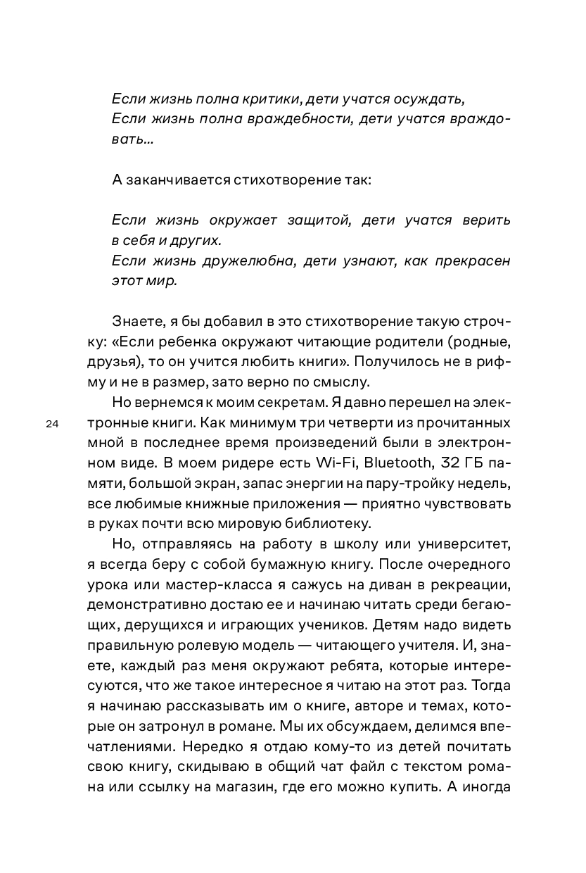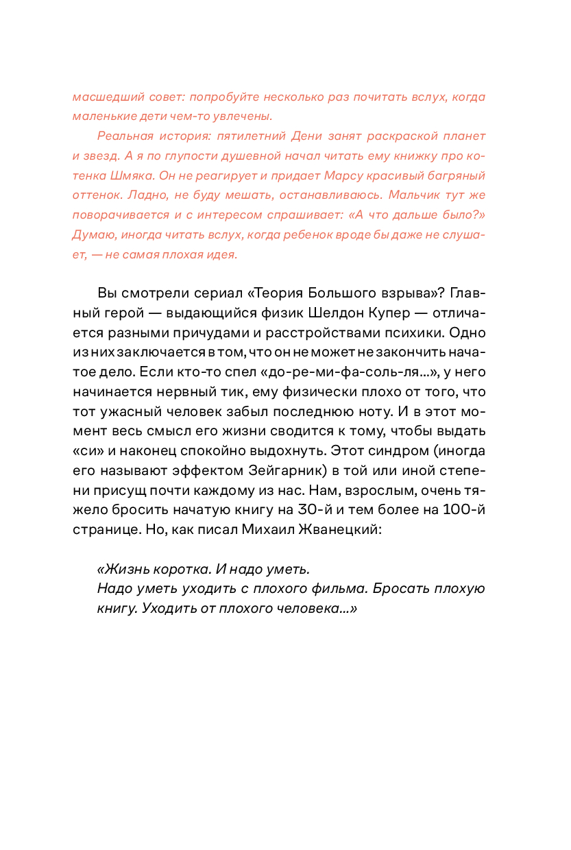 В книге представлены 100 работающих техник, которые помогут заинтересовать литературой детей разных возрастов: дошкольников, школьников и подростков. Автор объединил идеи из своей практики, предложив рассматривать чтение не только как путь к знаниям, но и как возможность проводить больше времени вместе с детьми и укреплять семейные связи.