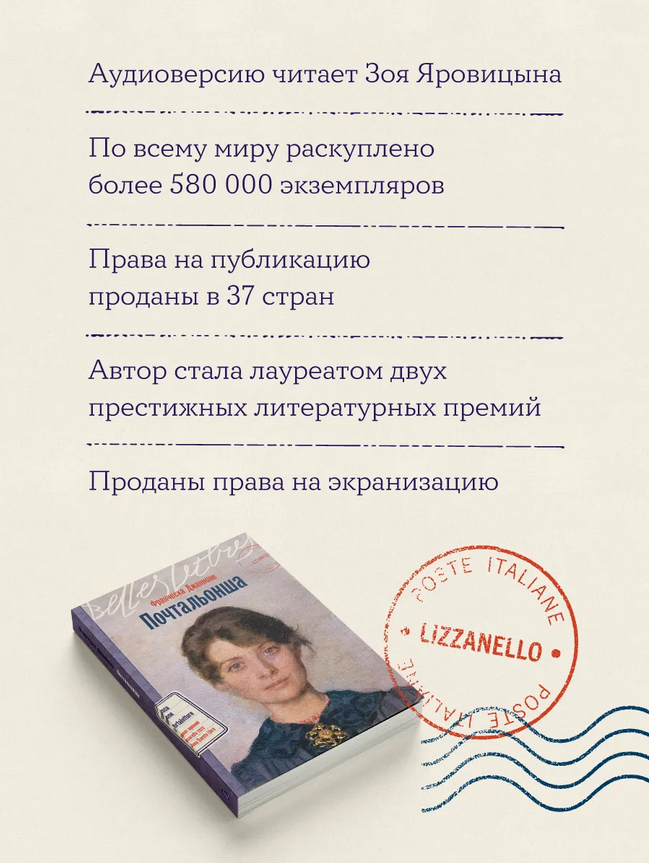 Роман основан на истории прабабушки автора, в нем рассказывается о жизни Анны – молодой женщины с севера Италии, в 1934 году переехавшей вместе с семьей на юг страны, на родину мужа. Став первой женщиной-почтальоном в Лиццанелло, Анна бросает вызов патриархальным устоям общества. Более 20 лет, сначала пешком, а затем на велосипеде, она доставляет жителям важную корреспонденцию – это и письма солдат с фронта, и открытки от тех, кто навсегда покинул Италию, и послания тайных любовников. Анна читает письма неграмотным и даже учит их читать и писать. Сама того не замечая, смелая "чужачка" с севера многое изменит в южном городке и серьезно повлияет на положение женщин в нем.