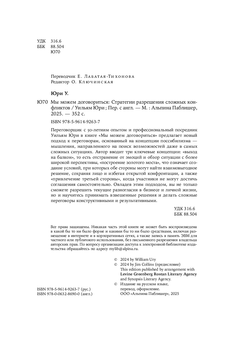 Переговорщик с 50‑летним опытом и профессиональный посредник Уильям Юри в книге "Мы можем договориться" предлагает новый подход к переговорам, основанный на концепции поссибилизма – мышления, направленного на поиск возможностей даже в самых сложных ситуациях.