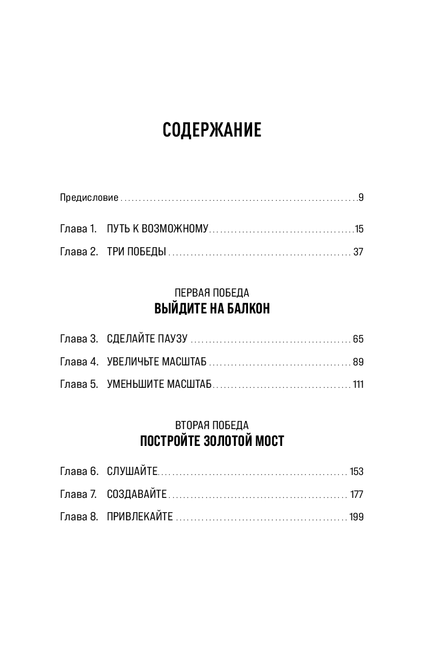 Автор вводит три ключевые концепции: "выход на балкон", то есть отстранение от эмоций и обзор ситуации с более широкой перспективы, "построение золотого моста", что означает создание условий, при которых обе стороны могут найти взаимовыгодное решение, сохраняя лицо и избегая открытой конфронтации, а также "привлечение третьей стороны", когда участники не могут достичь соглашения самостоятельно.
