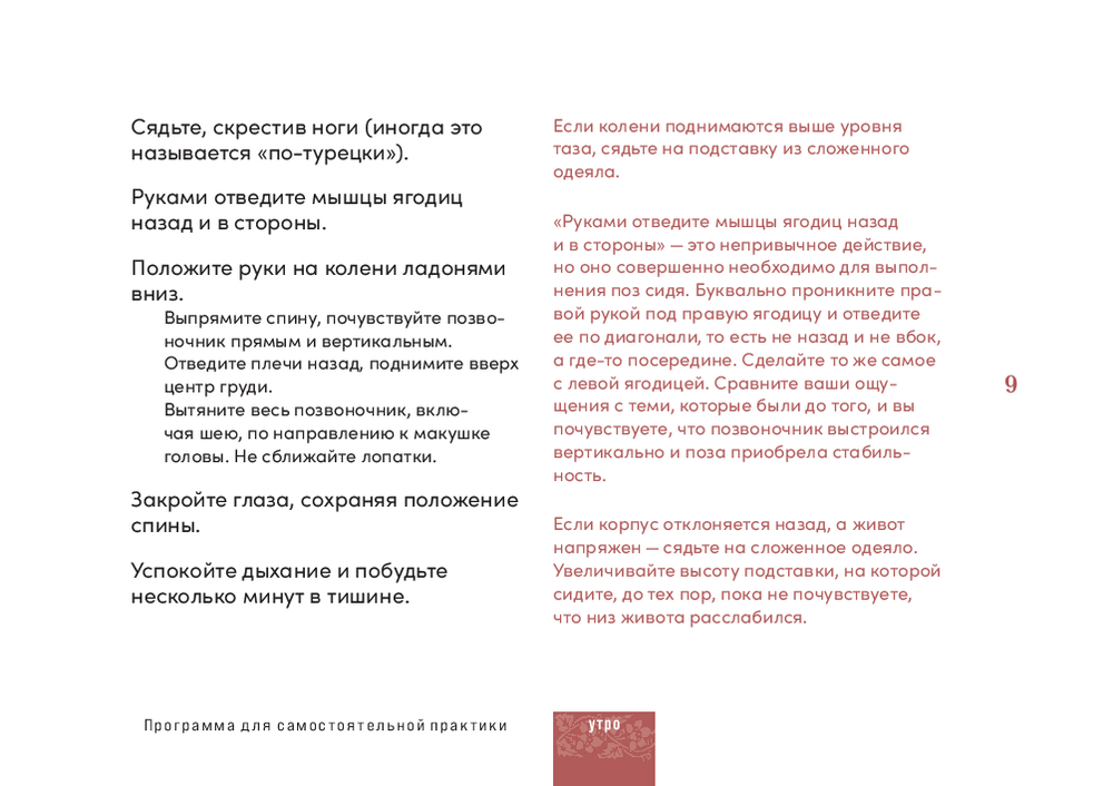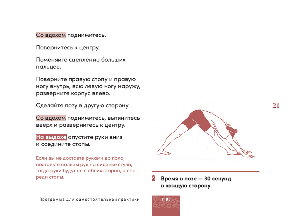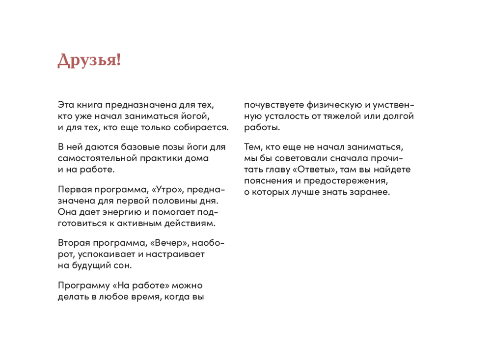 Небольшая книга удобного формата – ваш первый инструктор йоги. В руководстве даются базовые упражнения йоги метода Айенгара, известного точностью инструкций и корректностью исполнения поз, для самостоятельной практики в домашних условиях или на работе. Книга написана доступным языком, содержит схемы и рисунки к упражнениям, в ней даются объяснения выполнения асан и предостережения, о которых стоит знать. Йога в кармане – простой и доступный путь к душевному и физическому здоровью.