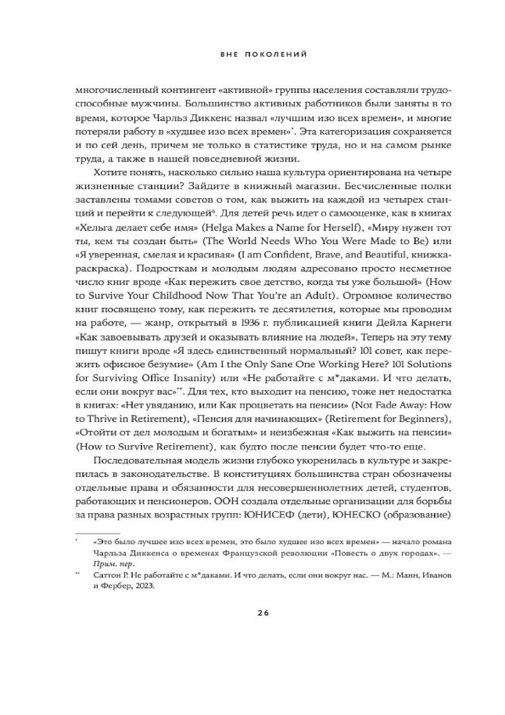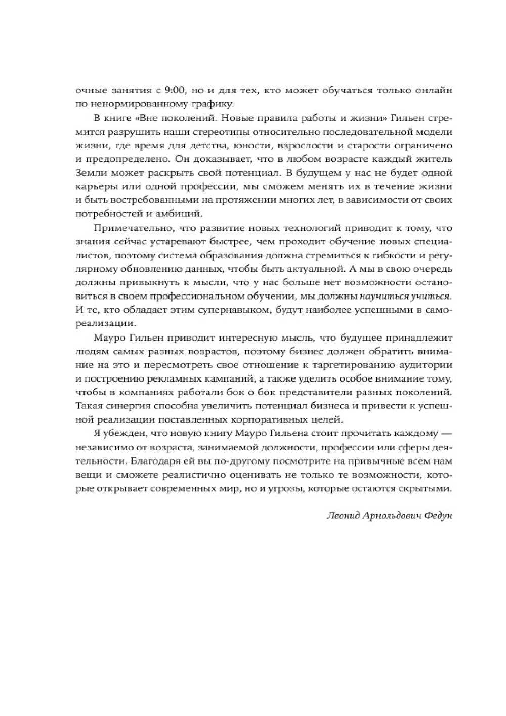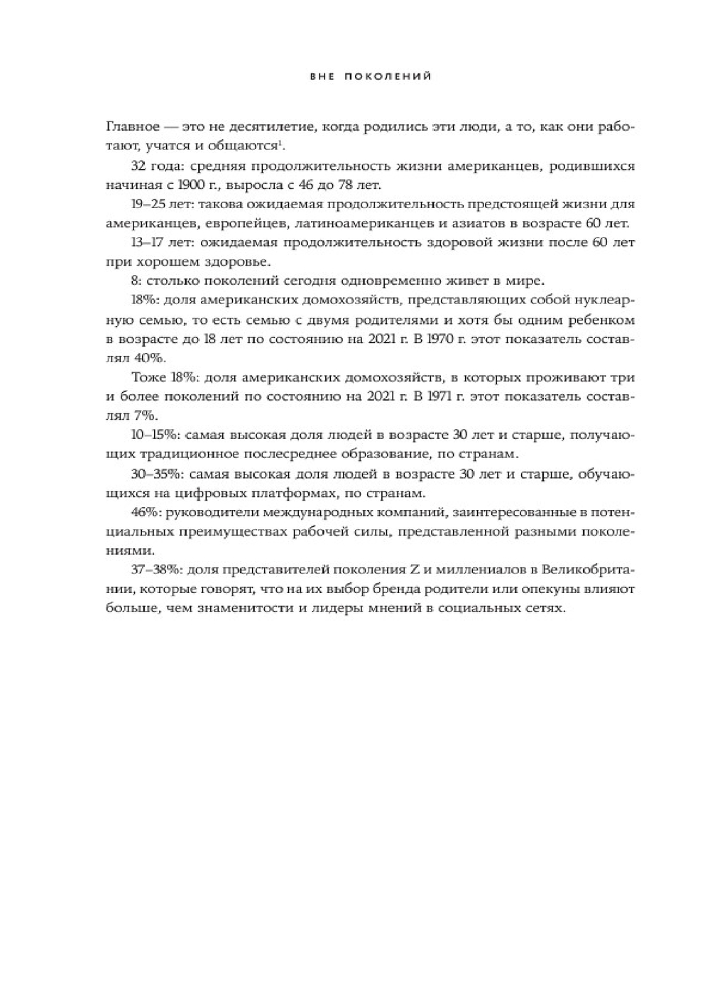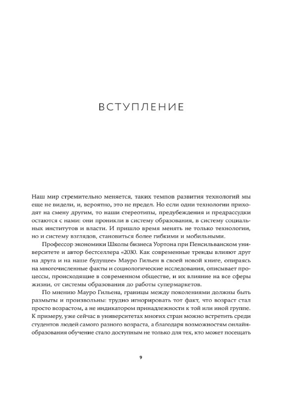 В своей книге "Вне поколений. Новые правила работы и жизни" Мауро Гильен, автор бестселлера "2030. Как современные тренды влияют друг на друга и на наше будущее", предлагает увлекательное исследование феномена "многолетников" и его влияния на все сферы жизни. Гильен доказывает, что привычная модель "учеба-работа-пенсия" устарела. "Многолетники" не боятся менять профессию, учиться новому и сохранять активность в любом возрасте.